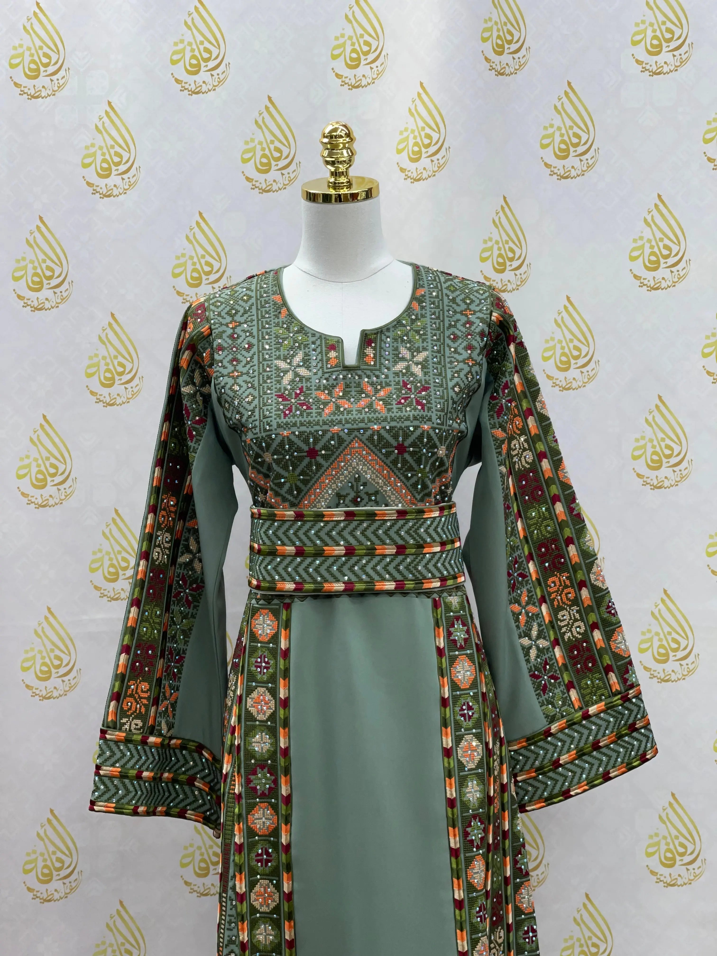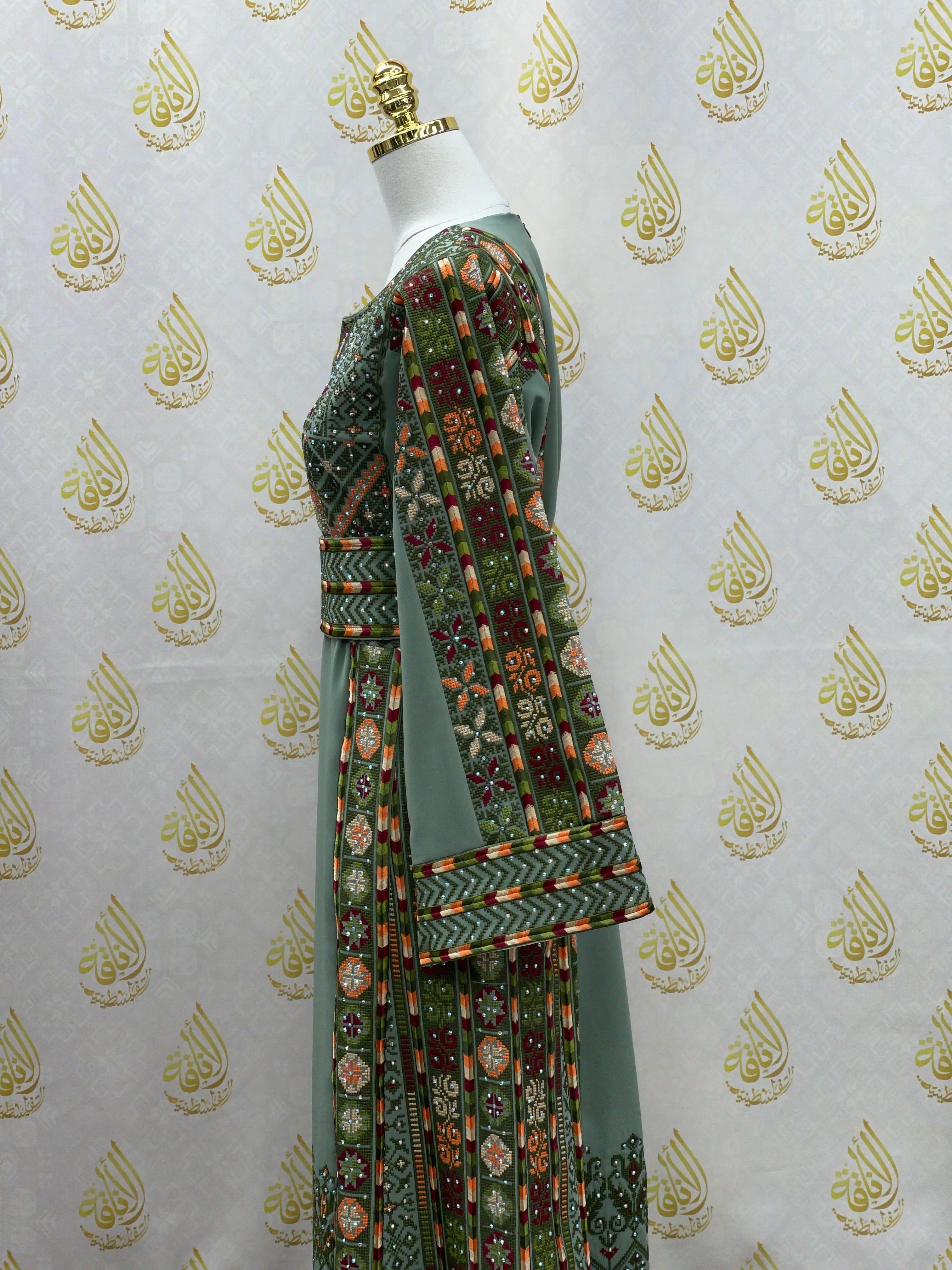 Palestinian Embroidered Olive Thobe – Heritage Elegance