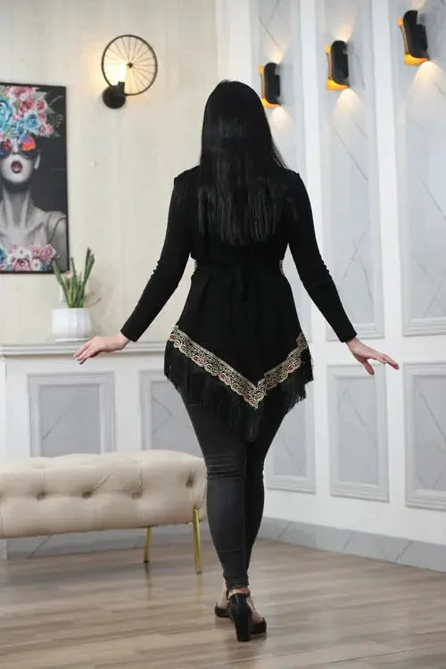 بوهو شيك: سترة شيفون مطرزة بشراشيب