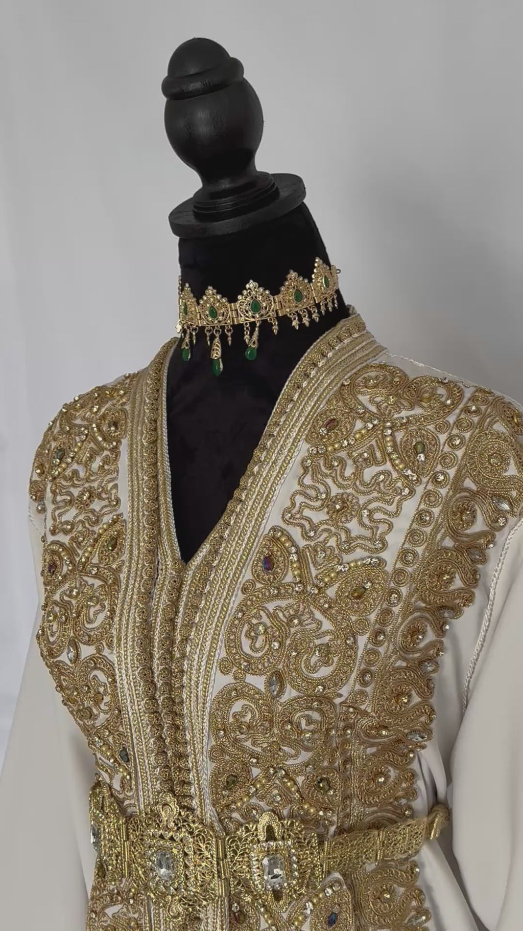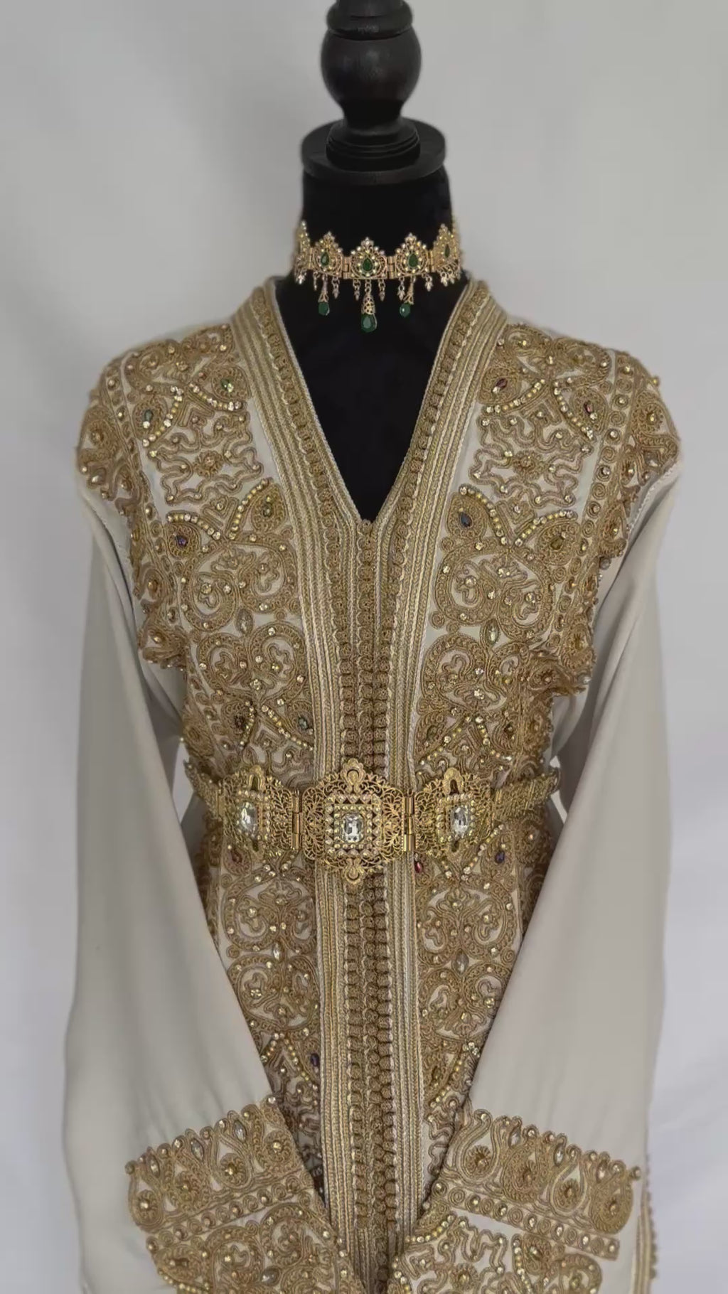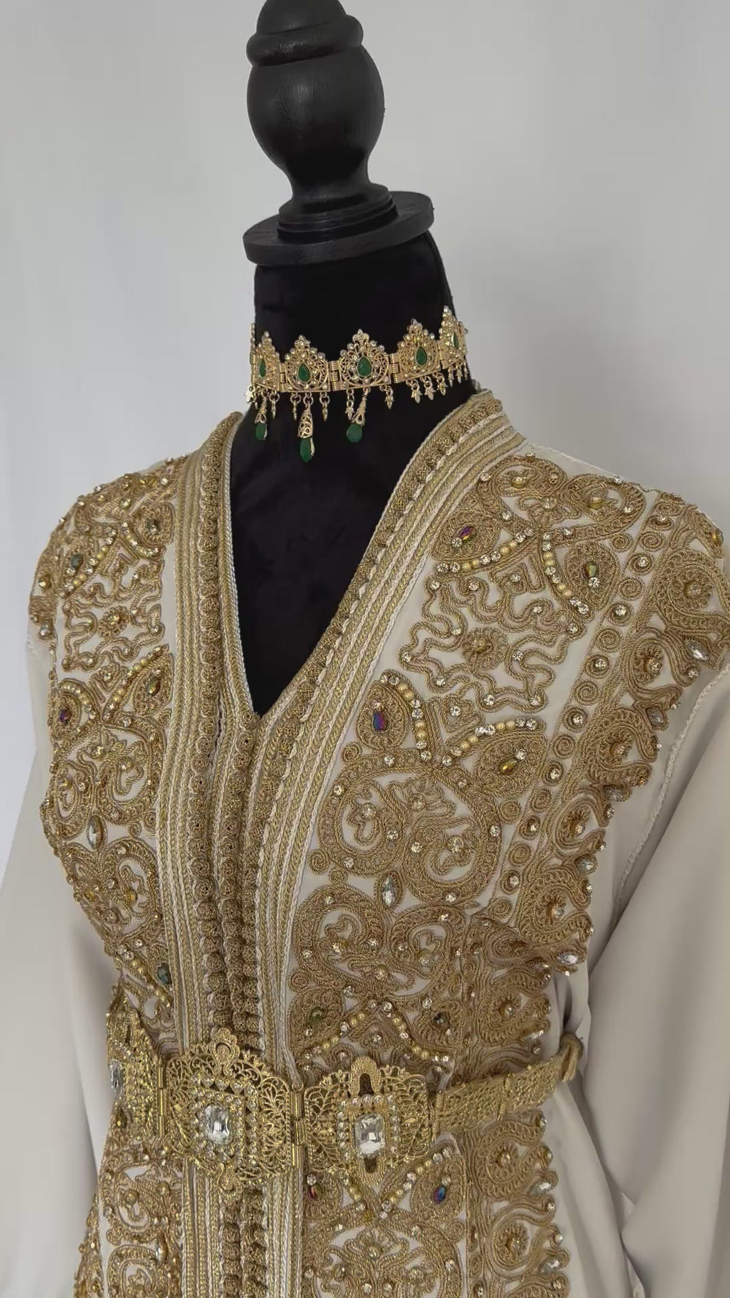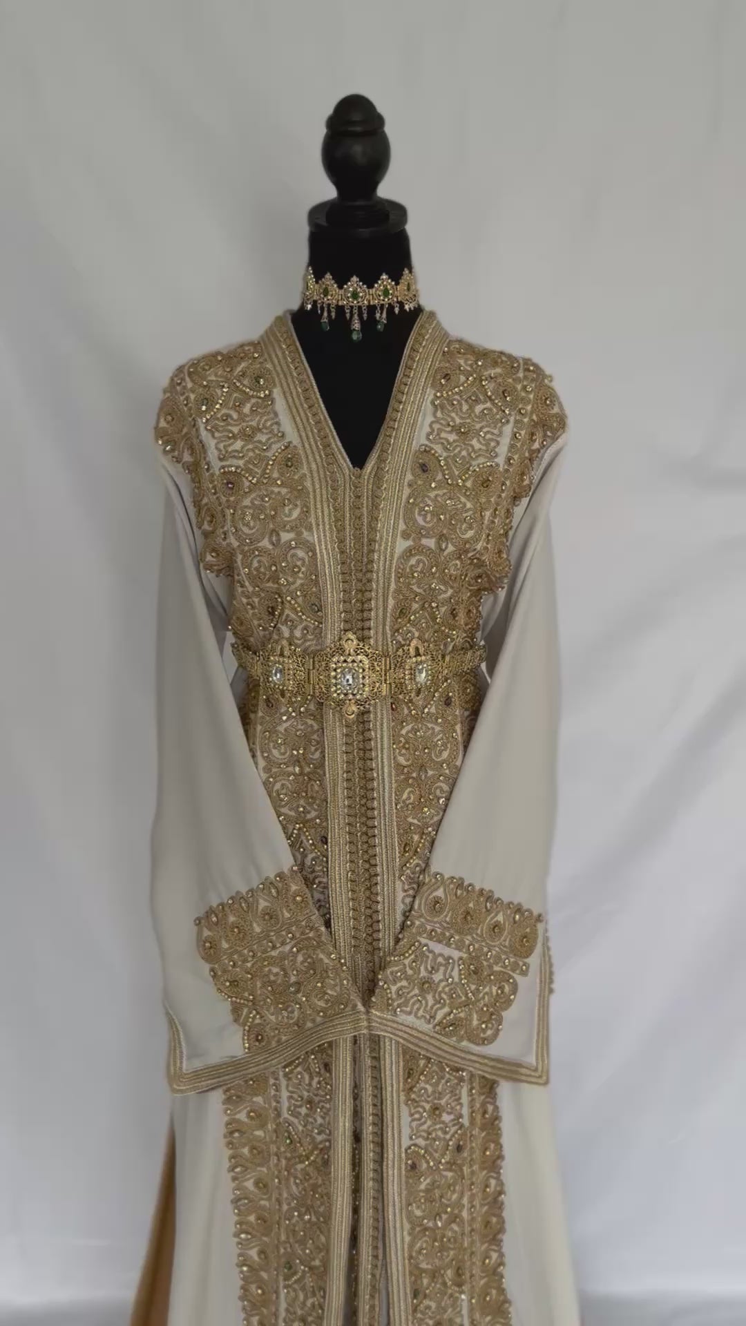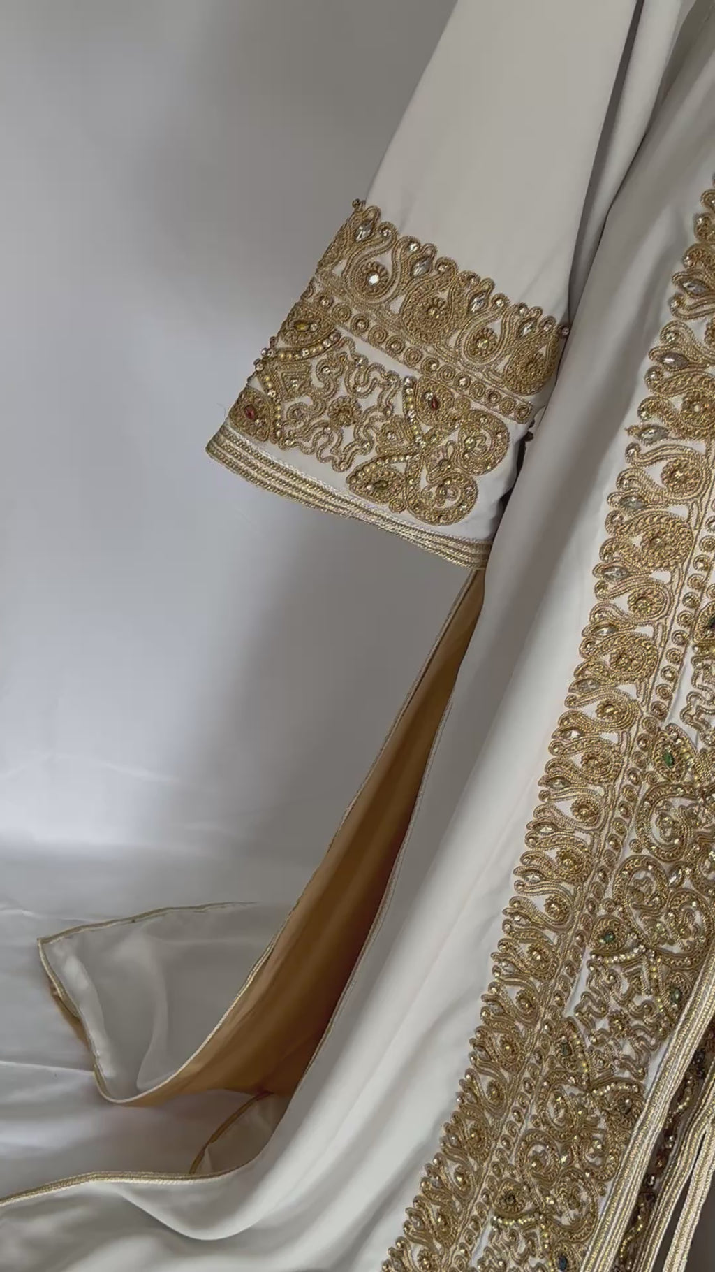 - ✅ Exquisite gold thread embroidery with hand-applied sequins
