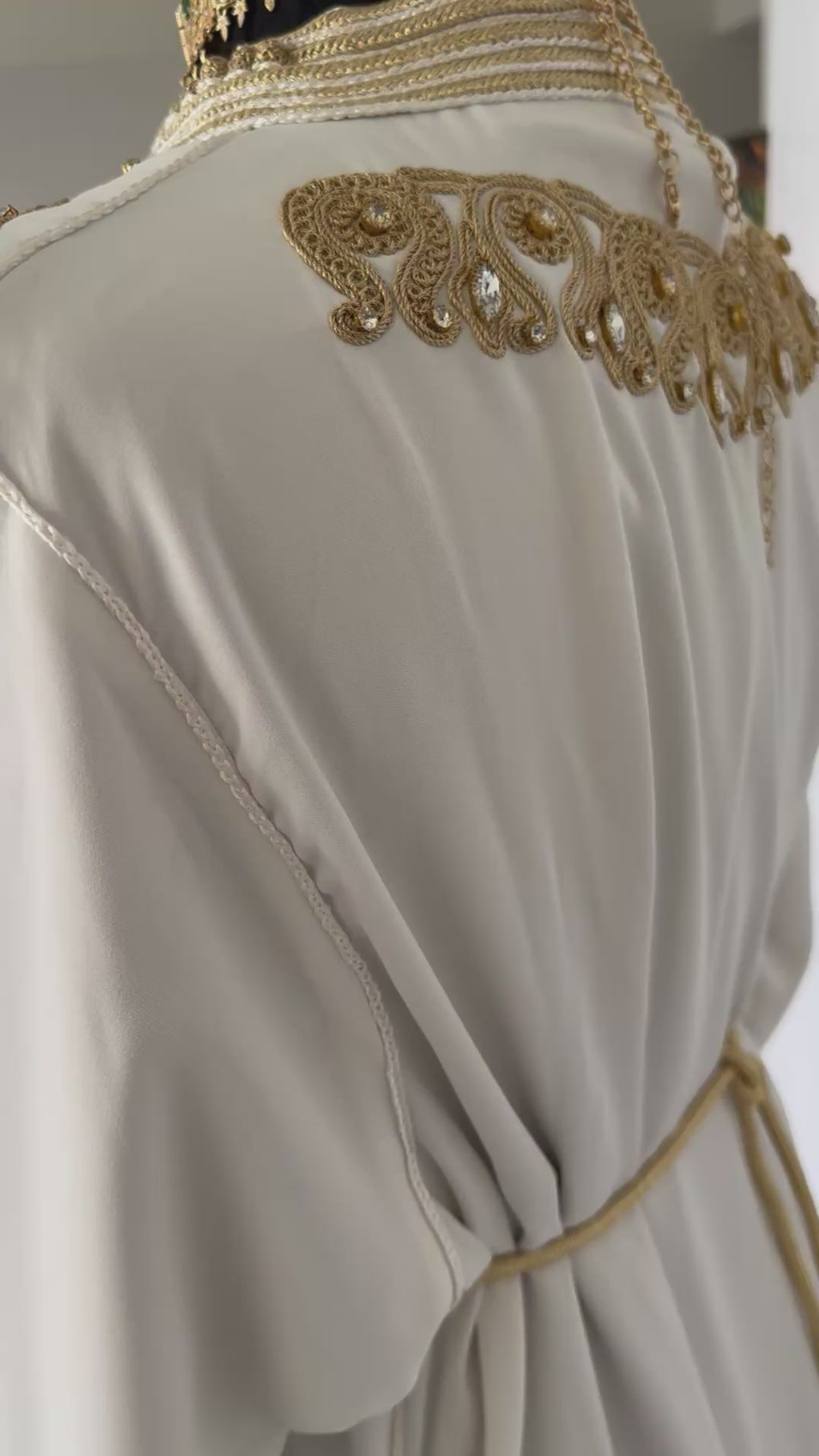 Handcrafted in Morocco, each kaftan is textile art at its finest. Skilled artisans spend hours hand-embellishing fabric with beads and sequins, making every garment truly unique. The kaftan includes a removable matching belt, embroidered to coordinate perfectly with the dress. This belt is not stitched, allowing wearers to adjust and style it flexibly.