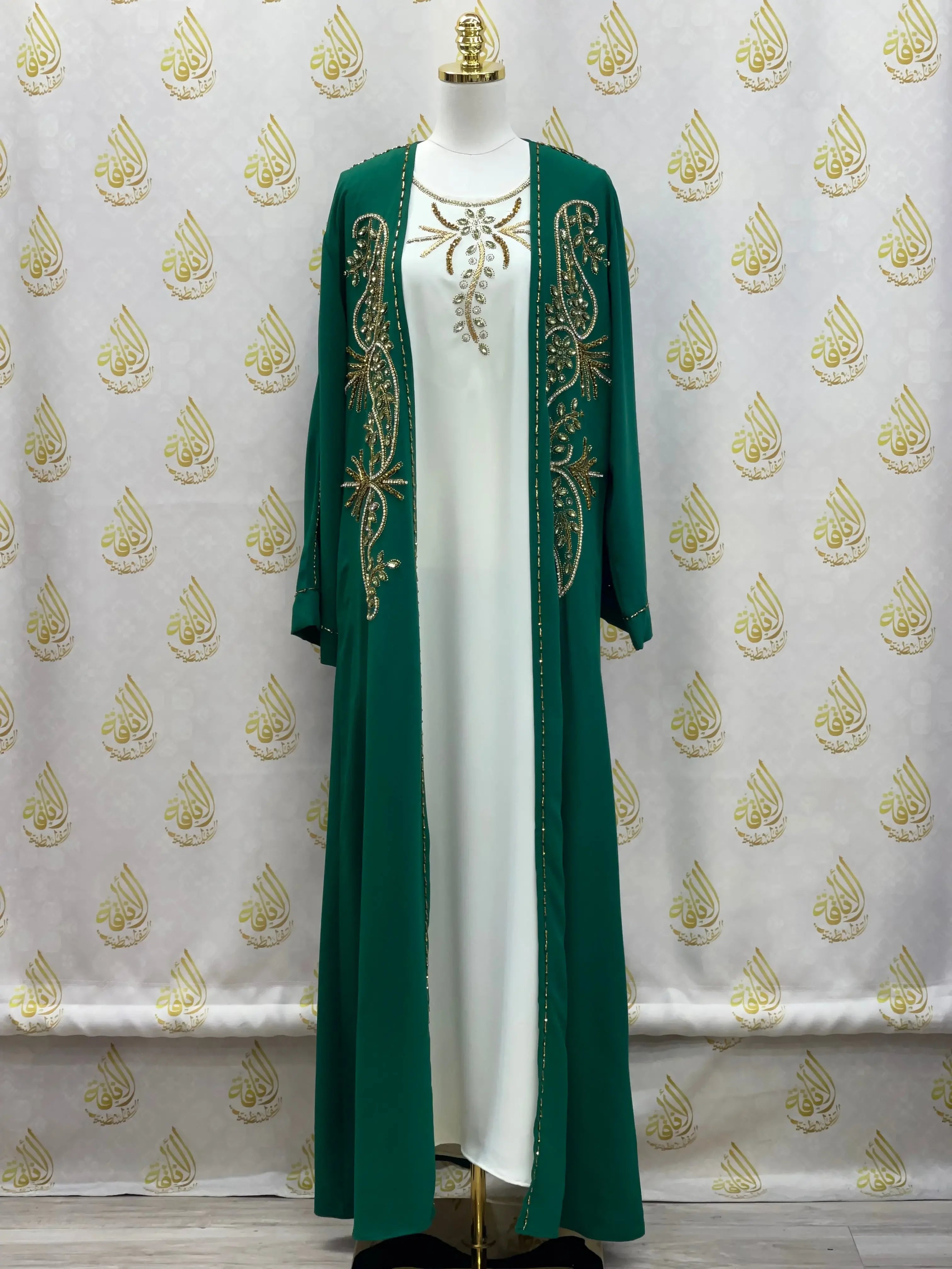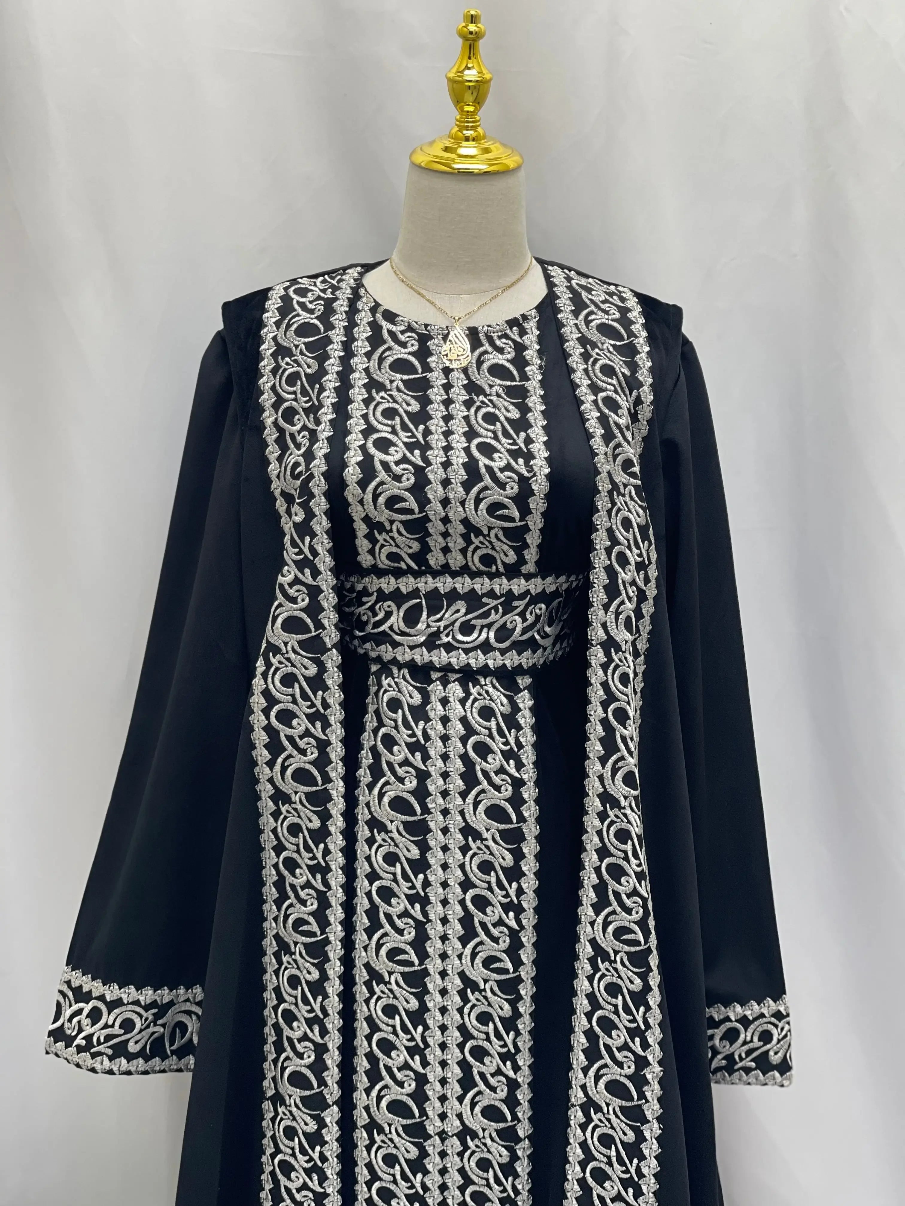 Palestinian Elegance Velvet 3pcs Set Arabic Letters Abaya Palestinian Elegance Palestinian Elegance Velvet 3pcs Set Arabic Letters Abaya Palestinian Elegance
