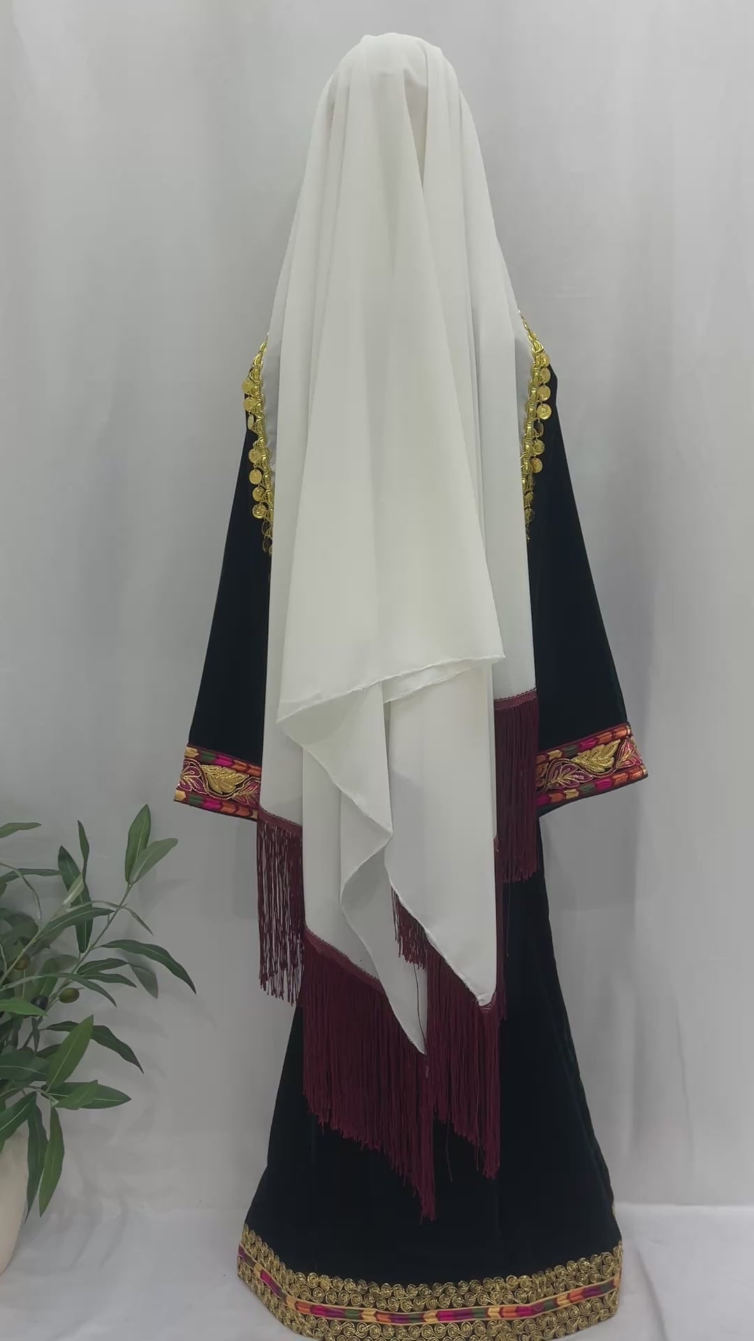 Shopping at Palestinian Elegance means you also enjoy free U.S. shipping on orders over $149. Elevate your wardrobe with this unique piece. Celebrate every moment in the Emerald Velvet Embroidered Qasab Thobe.