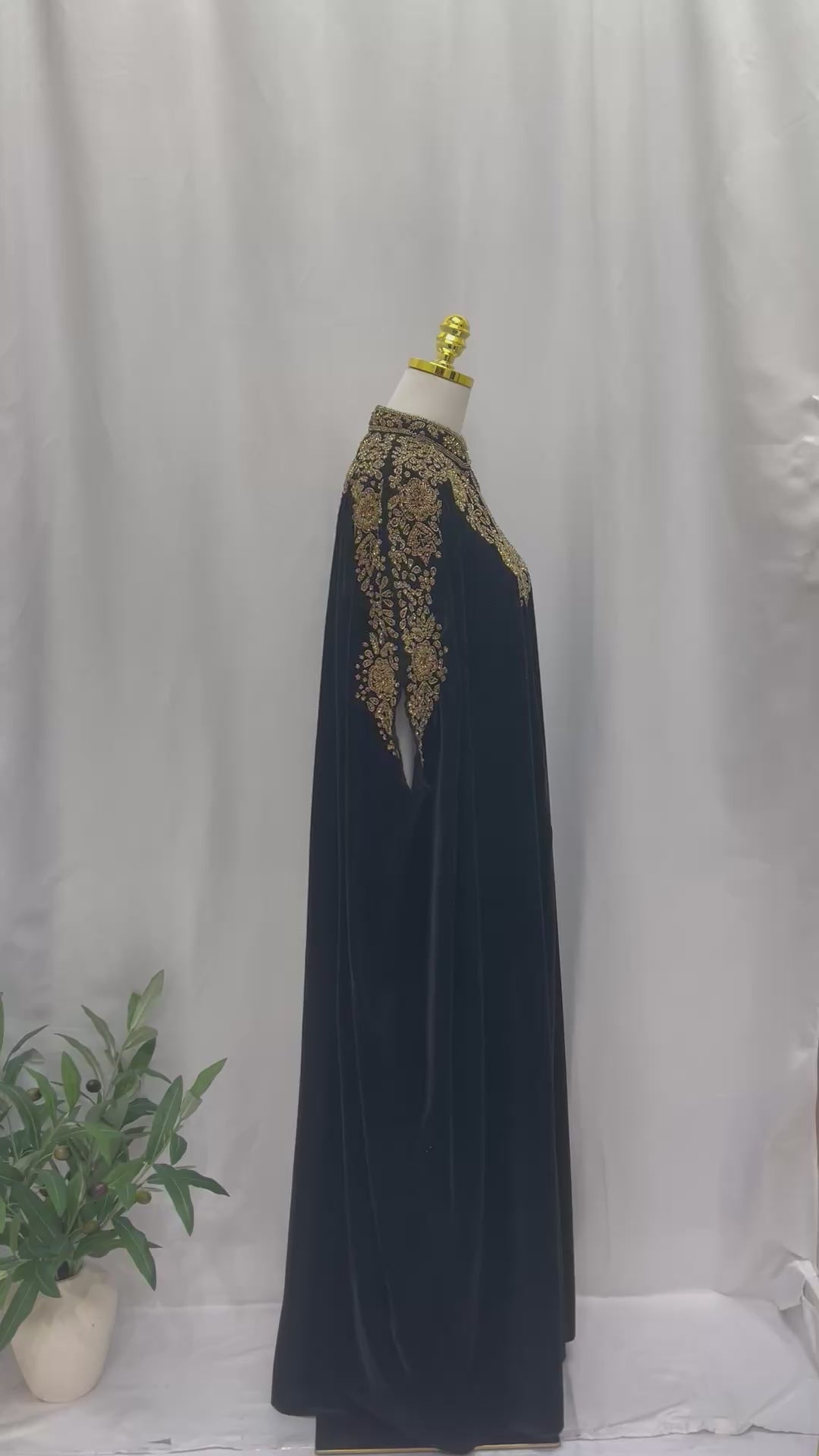 Wear the Velvet Embellished Cape to weddings, special parties, or cultural events. The embroidery fits traditional and modern styles. It matches evening dresses and formal outfits. This cape also works as a statement piece over everyday fashion. The high collar and flowing shape bring poise to your look.
