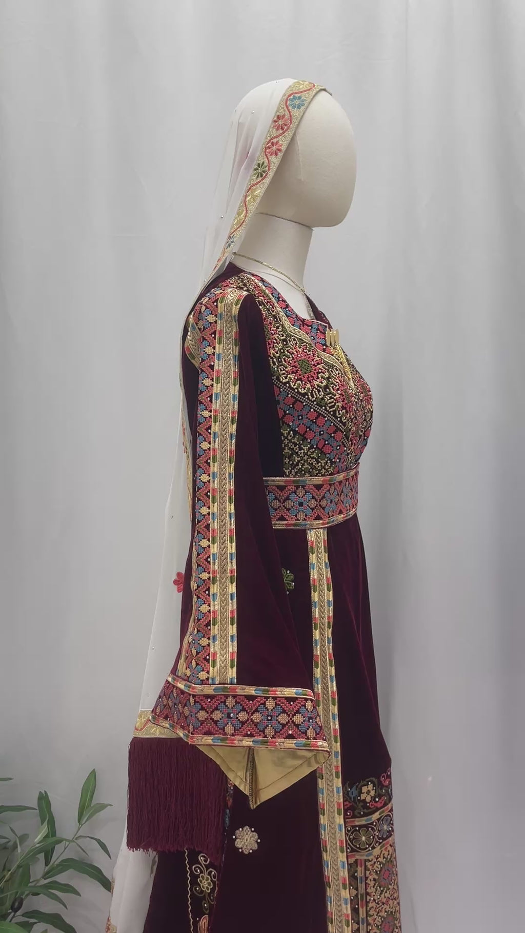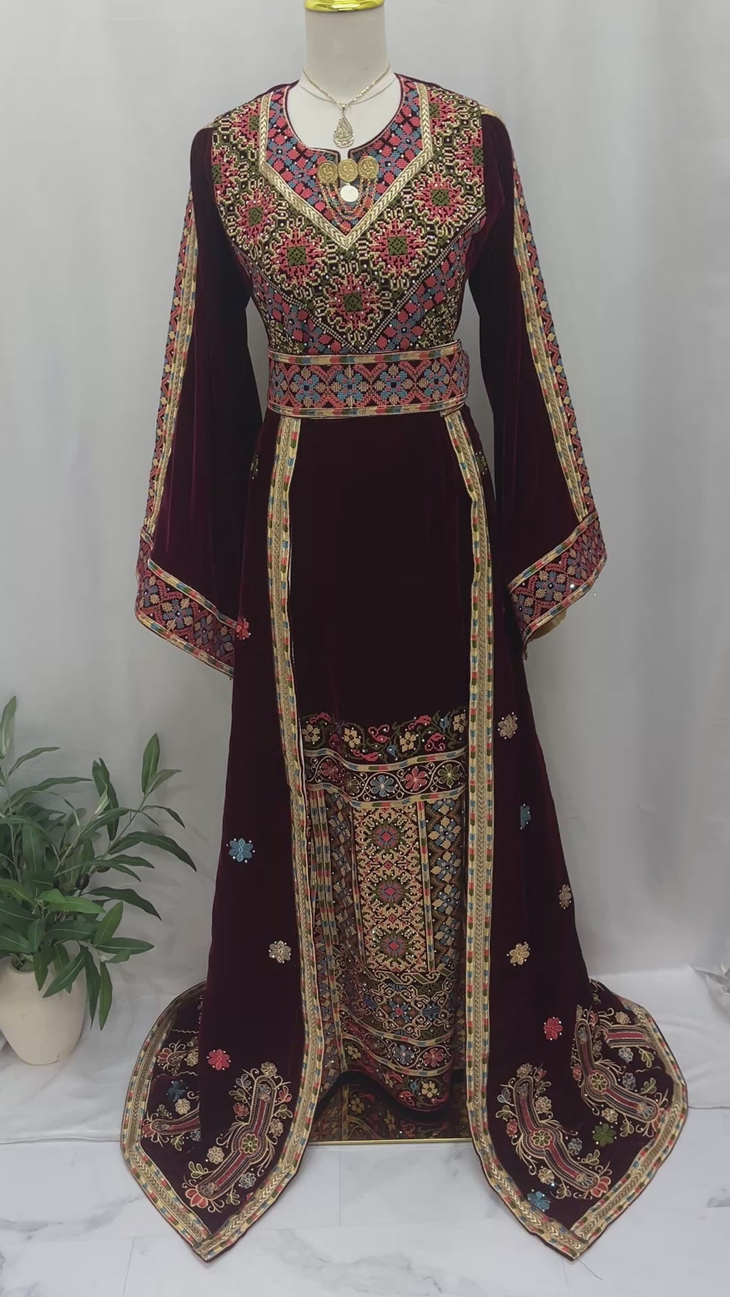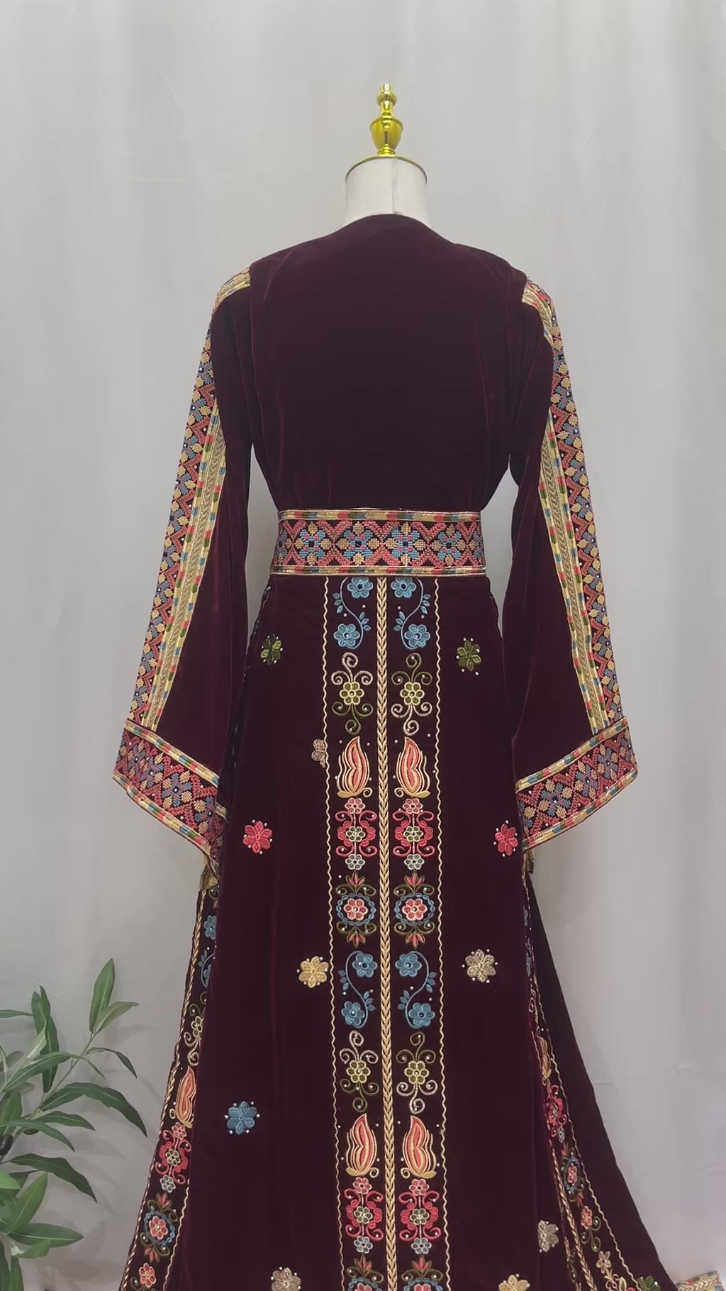 Maise Velevt Embroidered Thoub- A luxurious Palestinian Velvet Tthobe