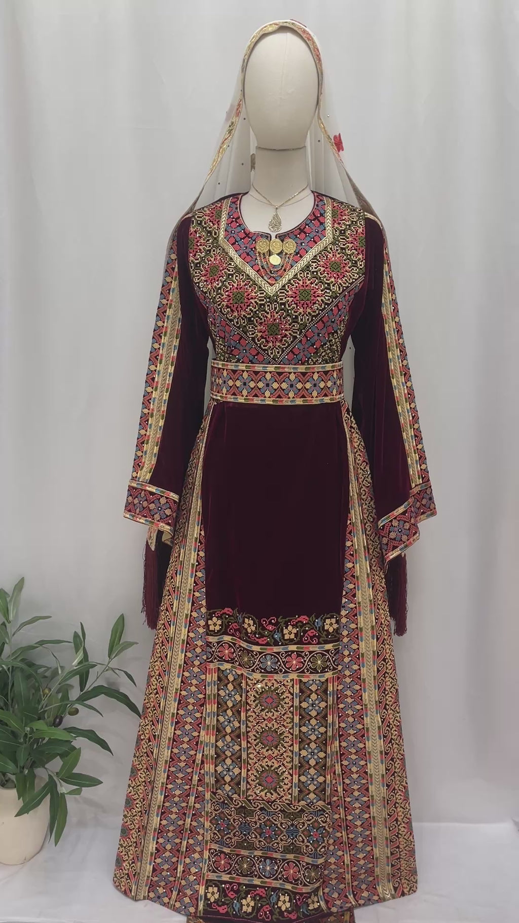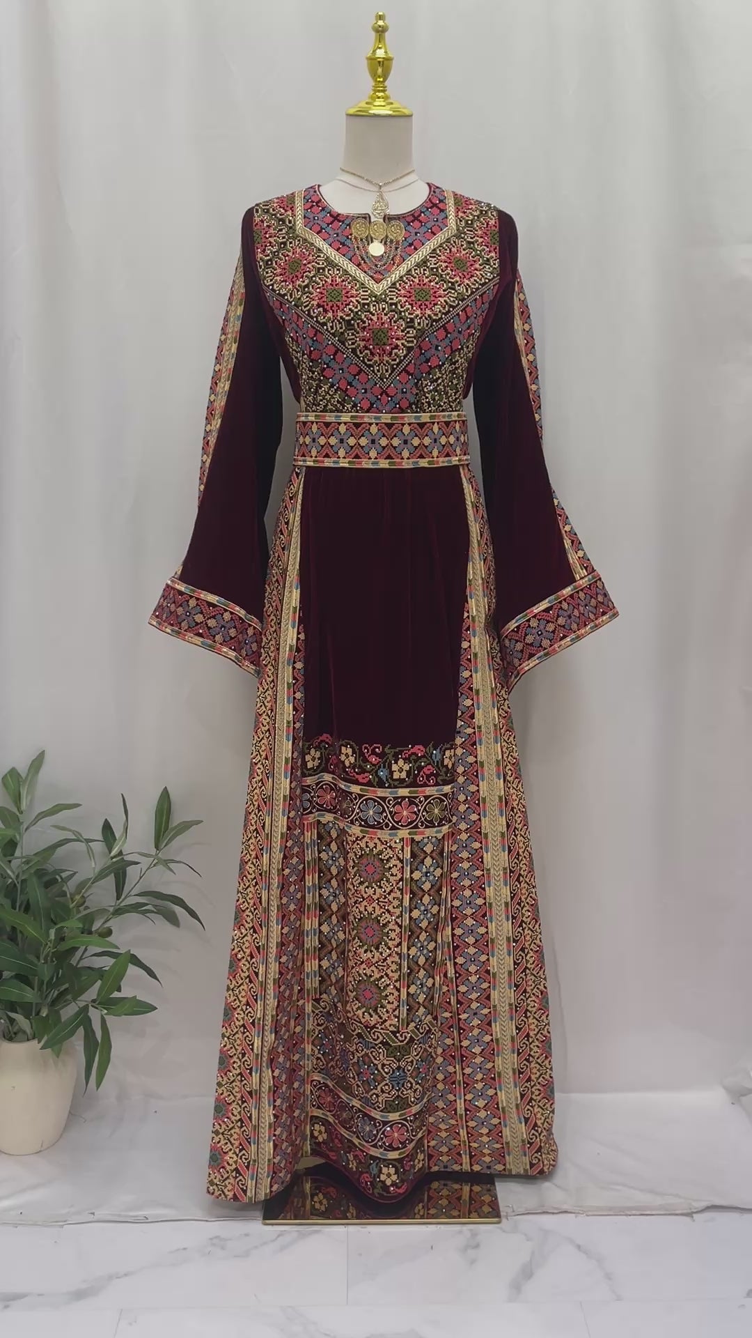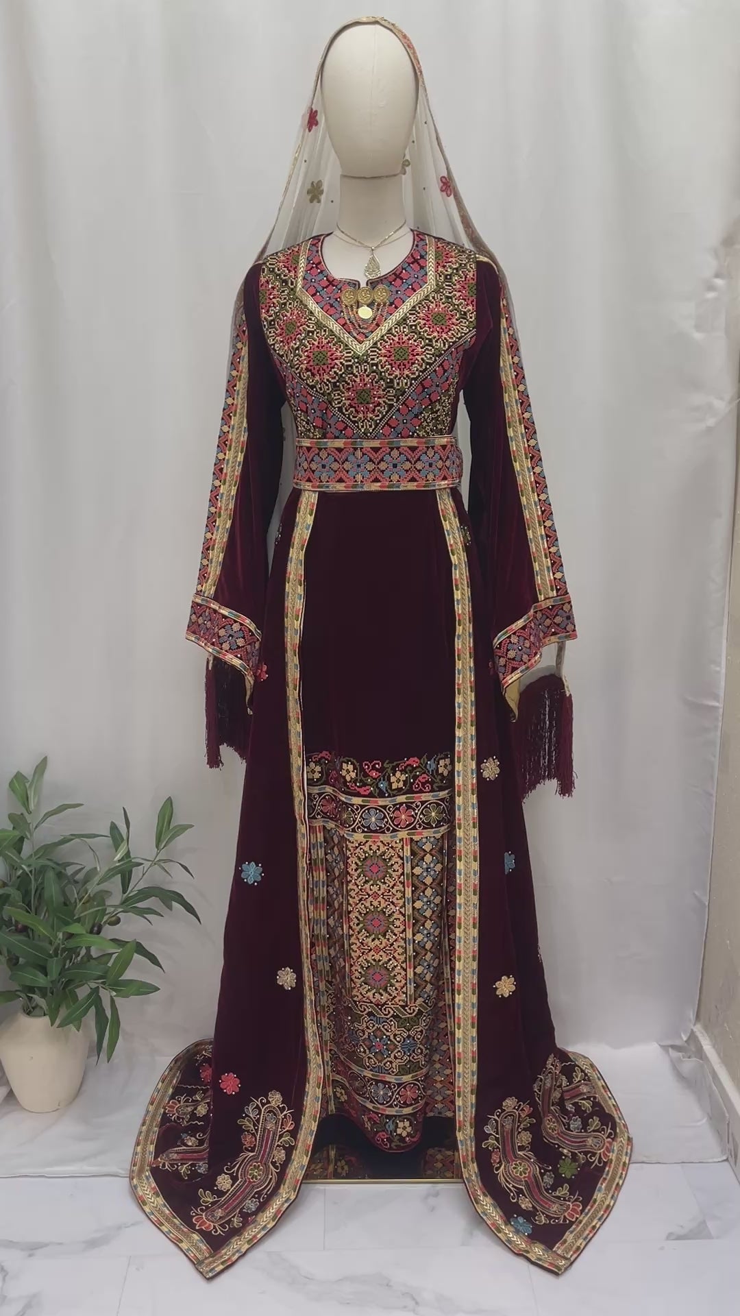 Maise Velevt Embroidered Thoub- A luxurious Palestinian Velvet Tthobe