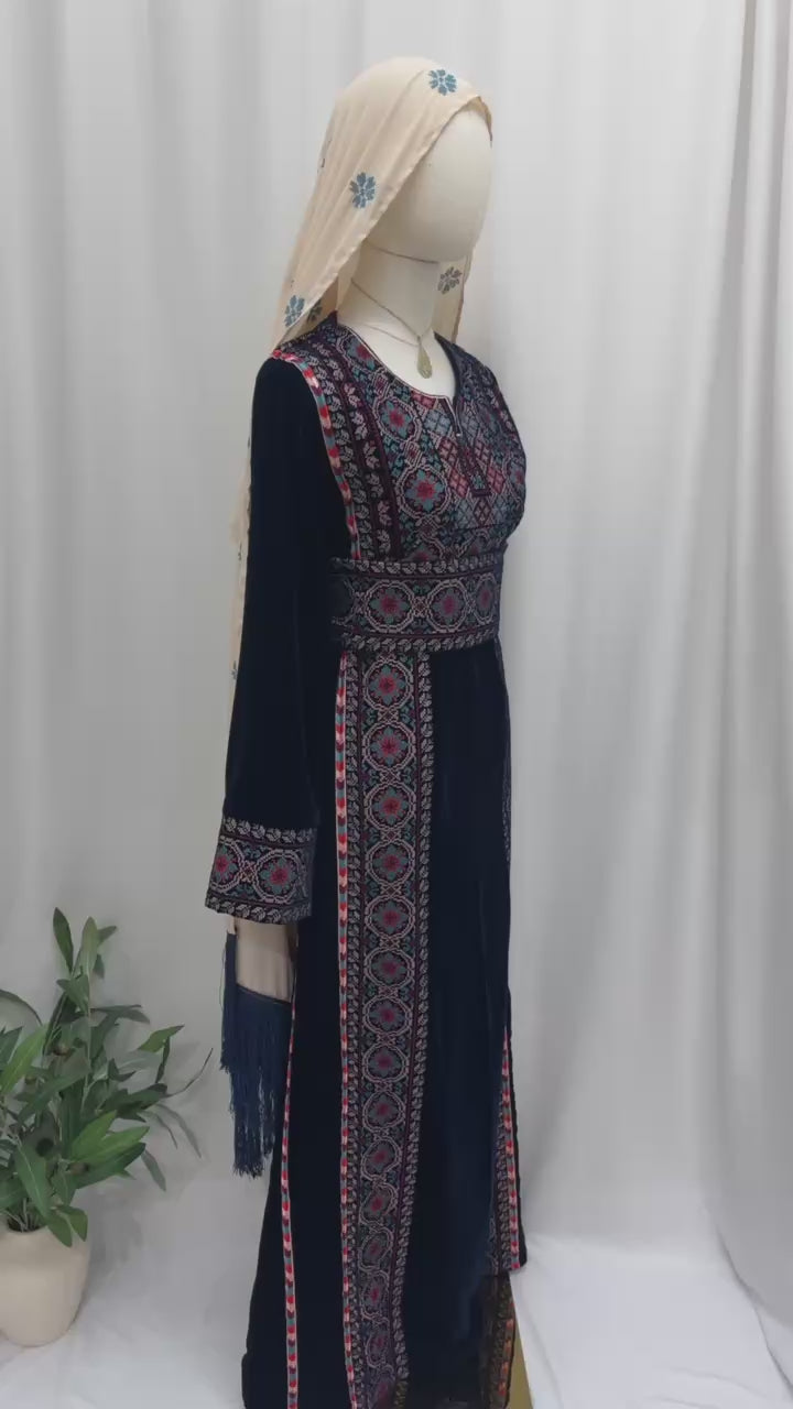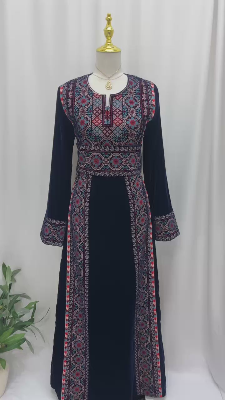 Palestine  Navy Royal Four-Line Velvet Thobe