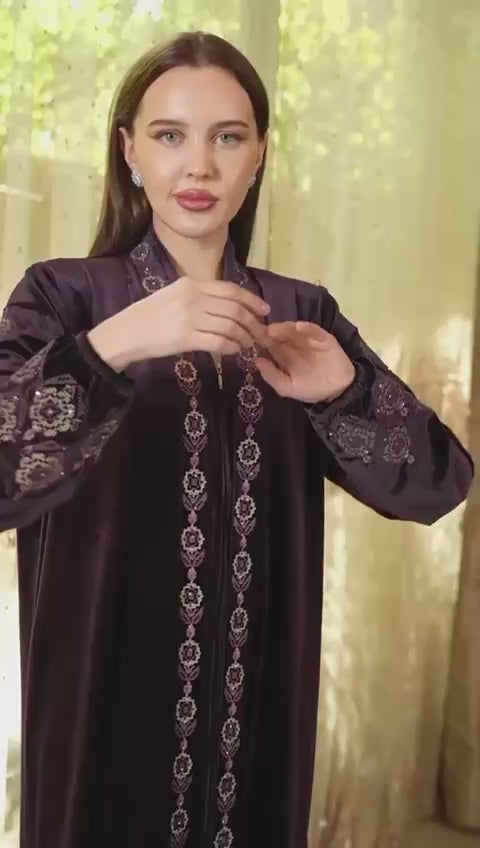 Purple Embroidered Velvet Abaya - Women's Luxurious and Elegant Fashion