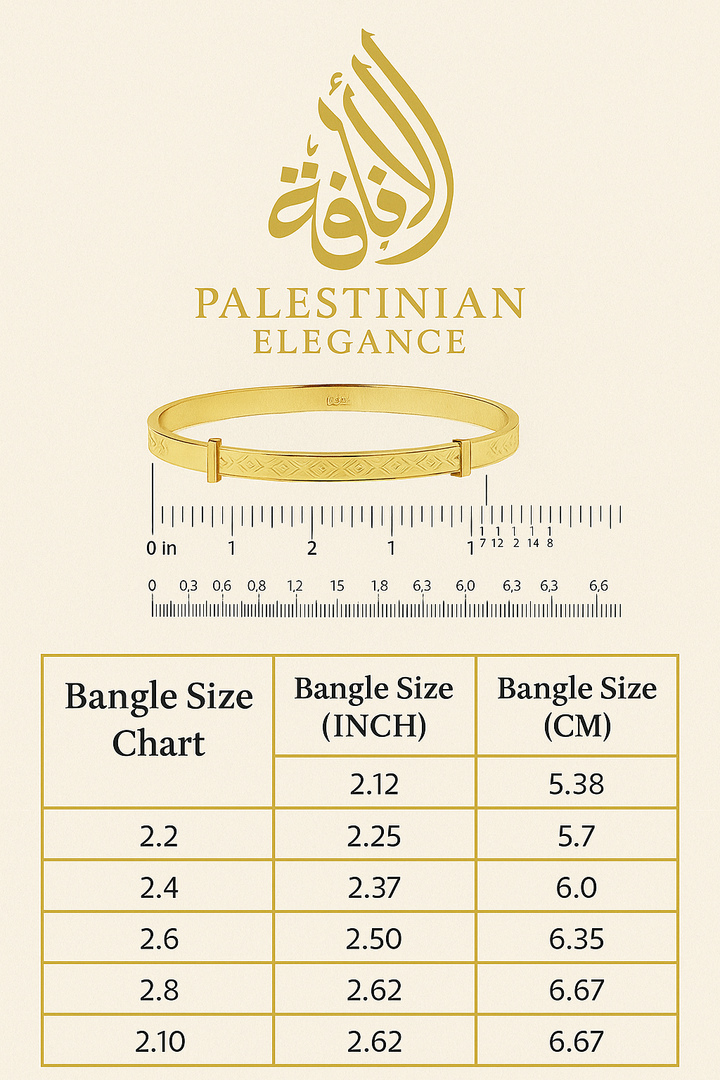 The Leaf Bangles with traditional design are perfect for special occasions. Wear them with dresses, abayas, or kaftans from Palestinian Elegance. These bangles suit both wedding and party outfits. The rich gold shine beautifully matches embroidered details.