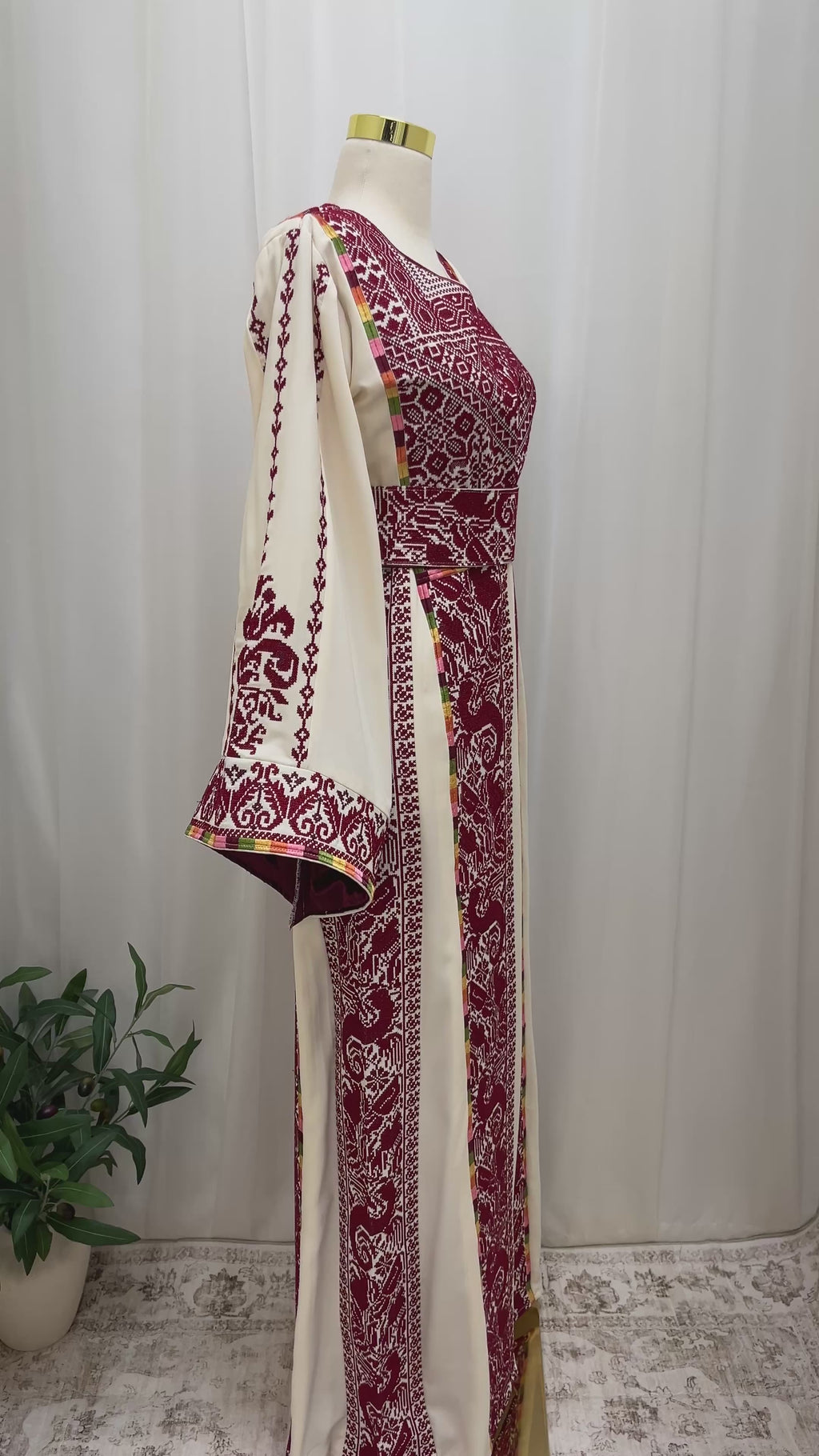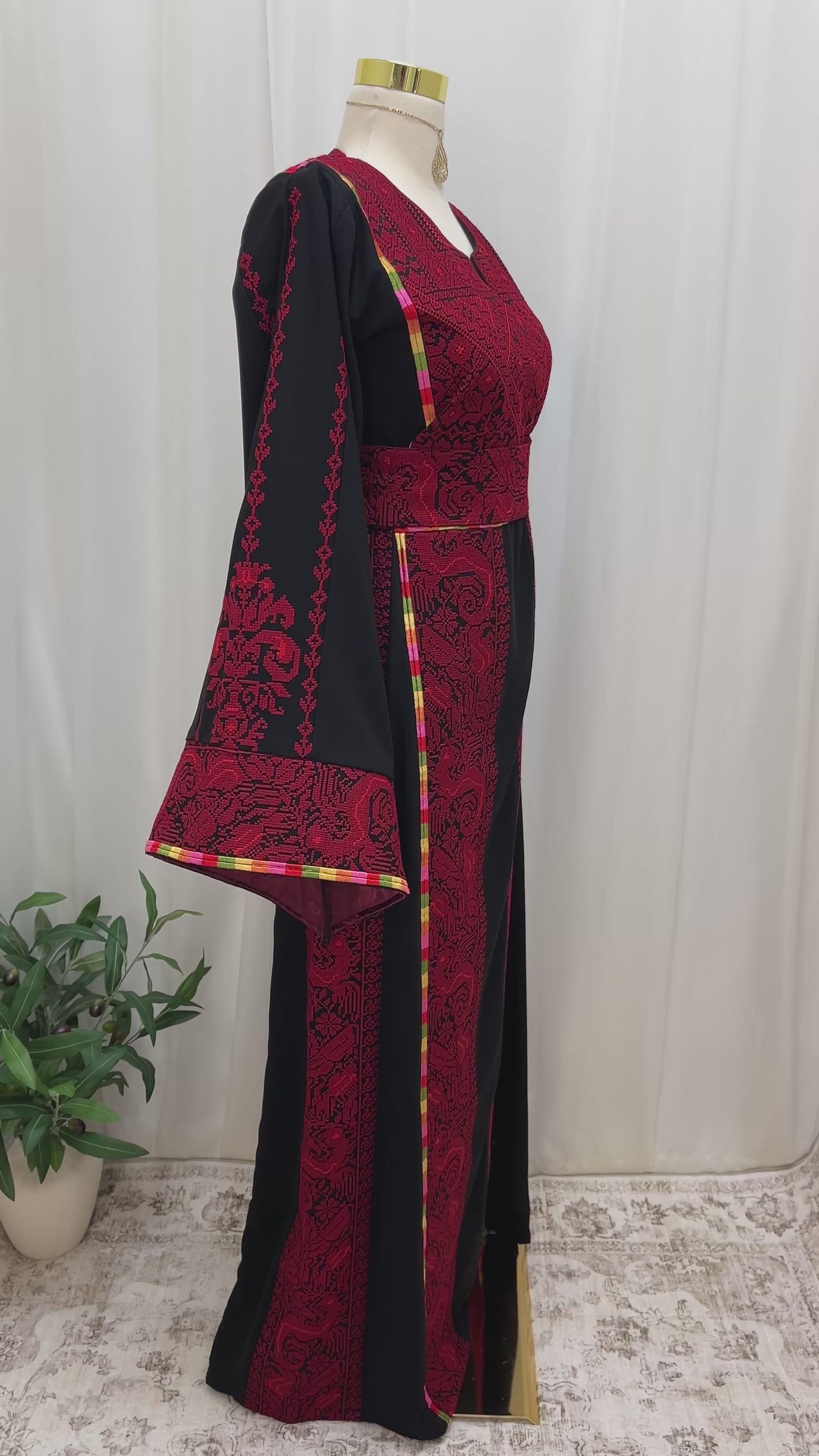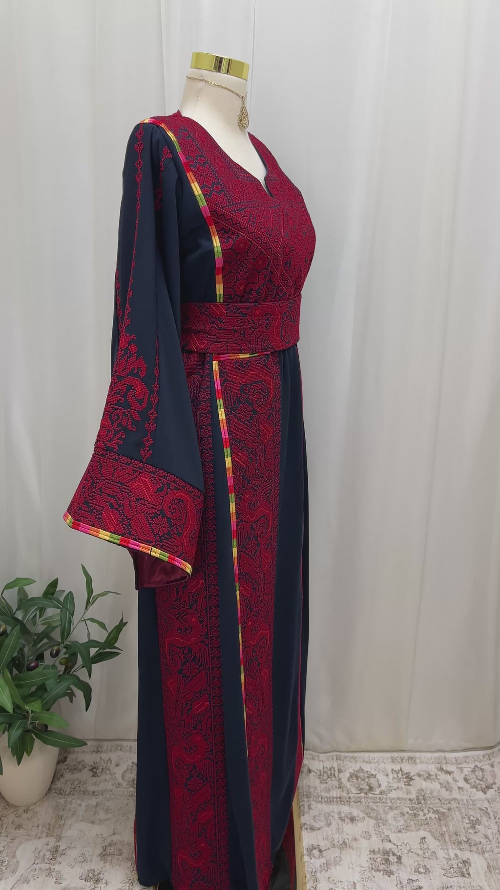 The Dragon Heritage Embroidered Thobe is a bold expression of strength and timeless Palestinian artistry. Inspired by powerful traditional motifs, this thobe features striking geometric embroidery arranged in commanding patterns that symbolize confidence and heritage.