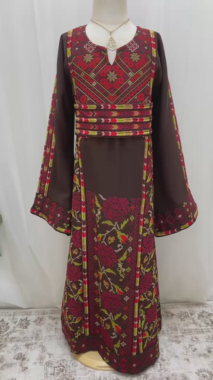 The Girls’ Brown Palestinian Thobe is perfect for numerous cultural and social occasions. Families often choose it for festive celebrations, weddings, or heritage events where traditional dress is cherished. Its exquisite embroidery and timeless design make it suitable for formal events and everyday wear within cultural communities.