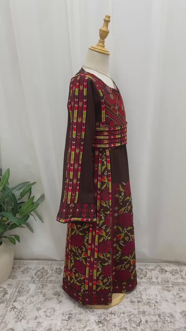Girls’ Brown Palestinian Thobe: A Timeless Treasure