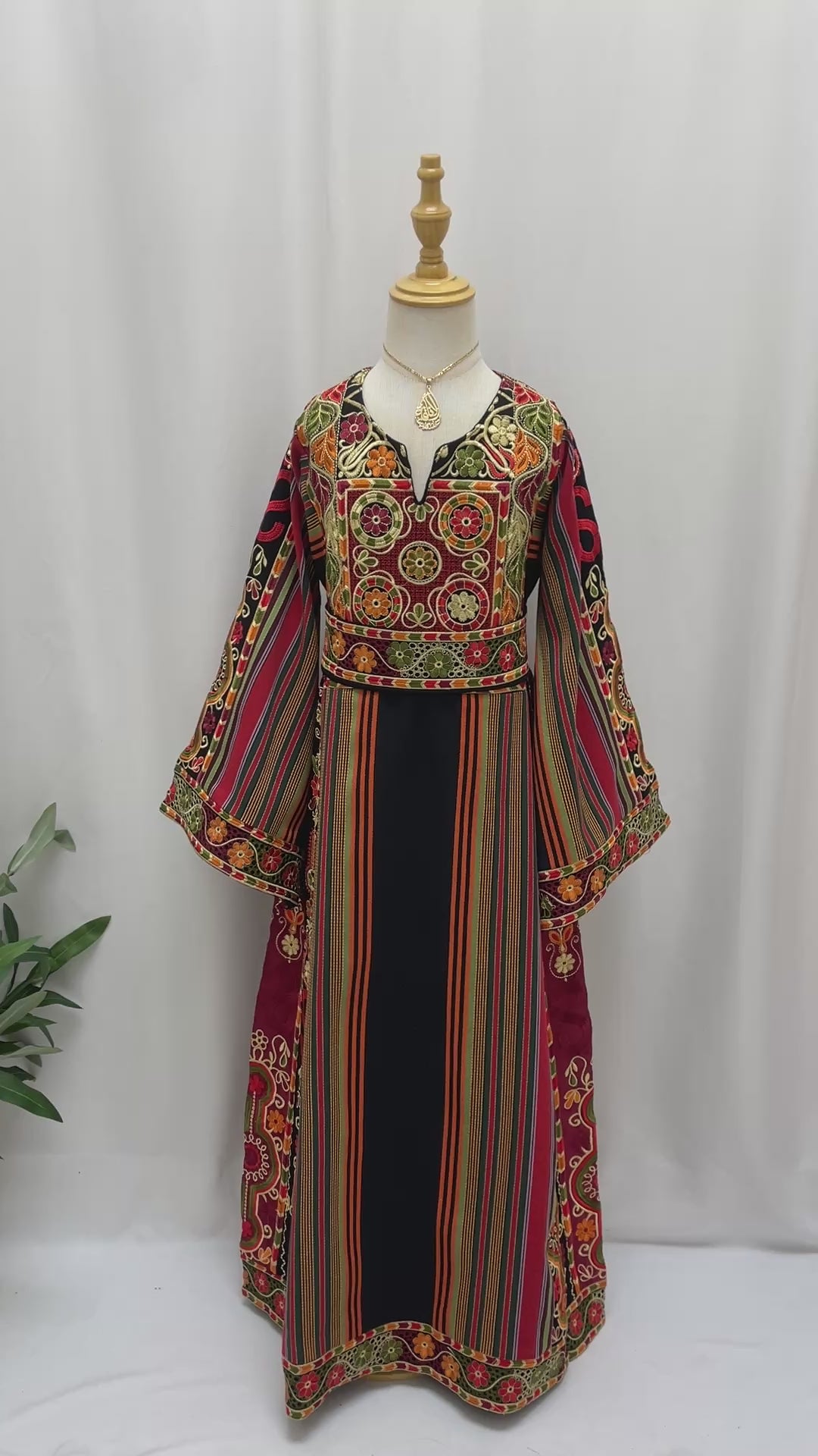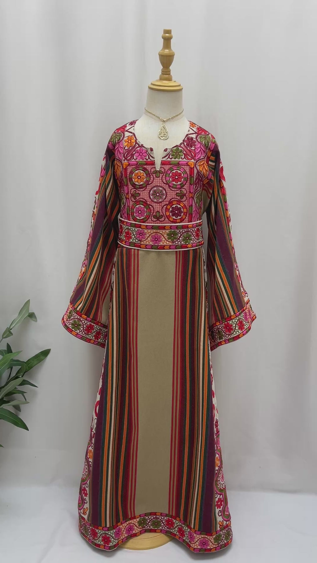 This piece features authentic Lujain Girls Majdalawi striped fabric combined with vibrant floral embroidery on the chest and sleeves, giving it a joyful and traditional look. The wide, flowy sleeves add a soft and graceful movement, making it perfect for Henna nights, Eid, family gatherings, and cultural celebrations.