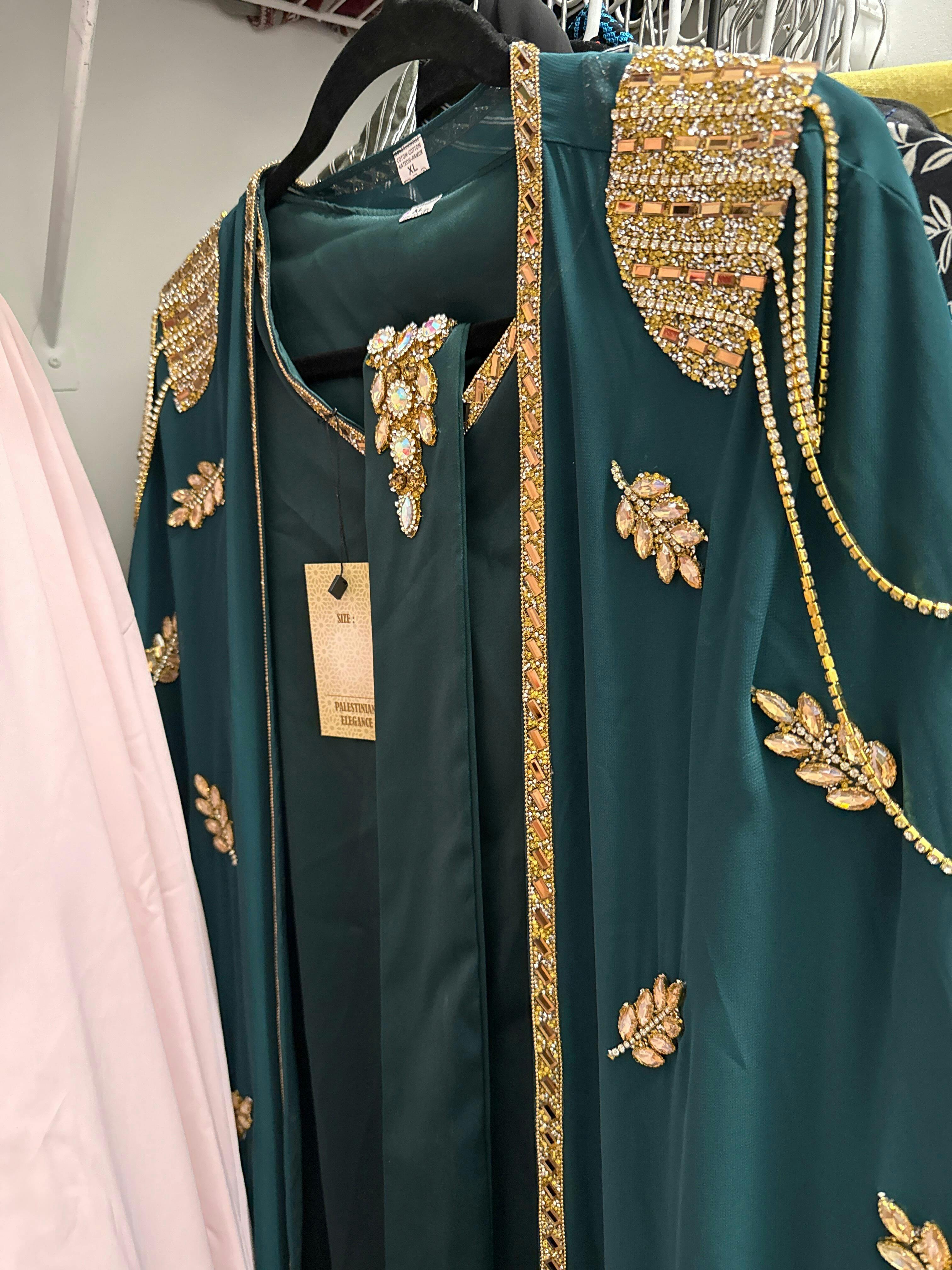 Step into elegance with the Luxury Open Abaya Set Set With Modest Fashion from Palestinian Elegance. This exquisite three-piece kaftan beautifully blends rich tradition and modern design, creating a truly stunning statement piece. Made from soft fabric, it feels gentle and smooth on your skin, providing comfort all day long. The open style of the abaya allows for graceful movement with every step, making it ideal for various occasions and settings.