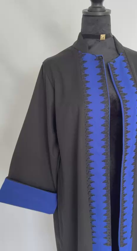 This elegant Moroccan Embroidery Kimono is designed with a classic open-front silhouette. The wide sleeves create a graceful, flowing look inspired by traditional Moroccan outerwear styles. The exquisite embroidery-style fabric detailing runs along the front and sleeves, crafted using contrasting fabric accents. This distinctive embroidery enhances the luxurious and refined appearance of the garment.