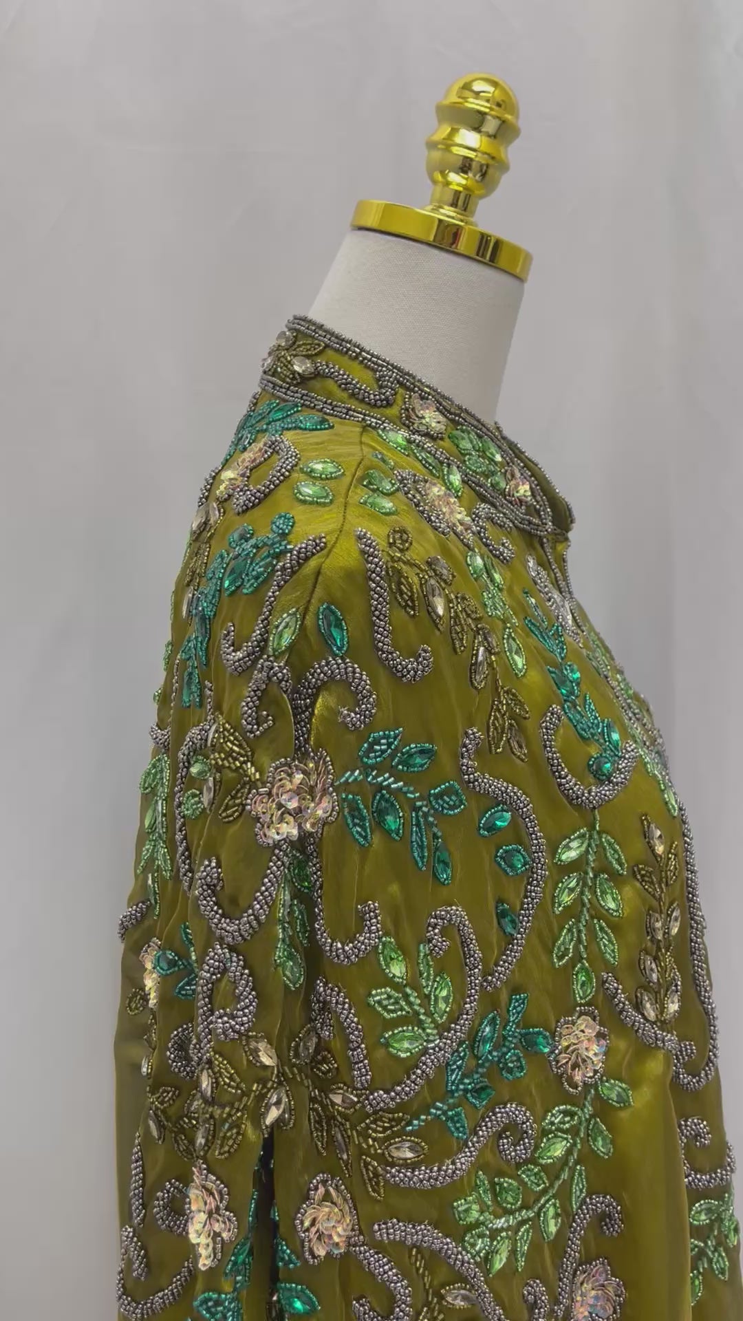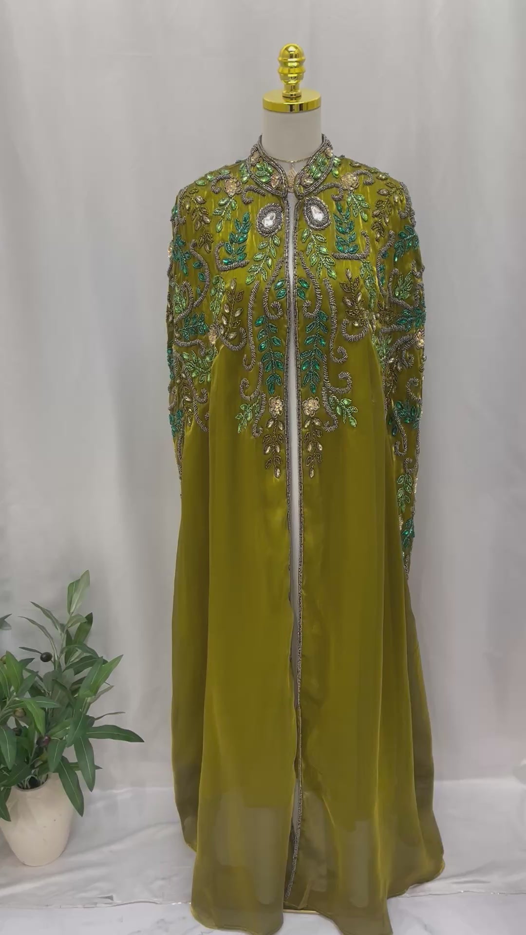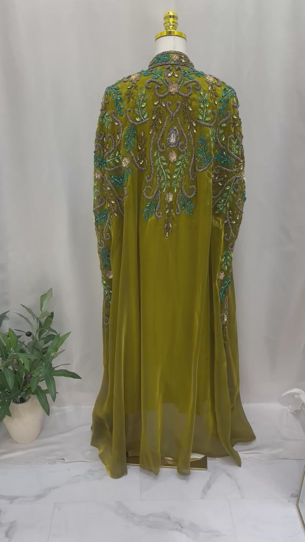 Olive Luxury Bejeweled Cape – Statement Elegance & Modern Sophistication