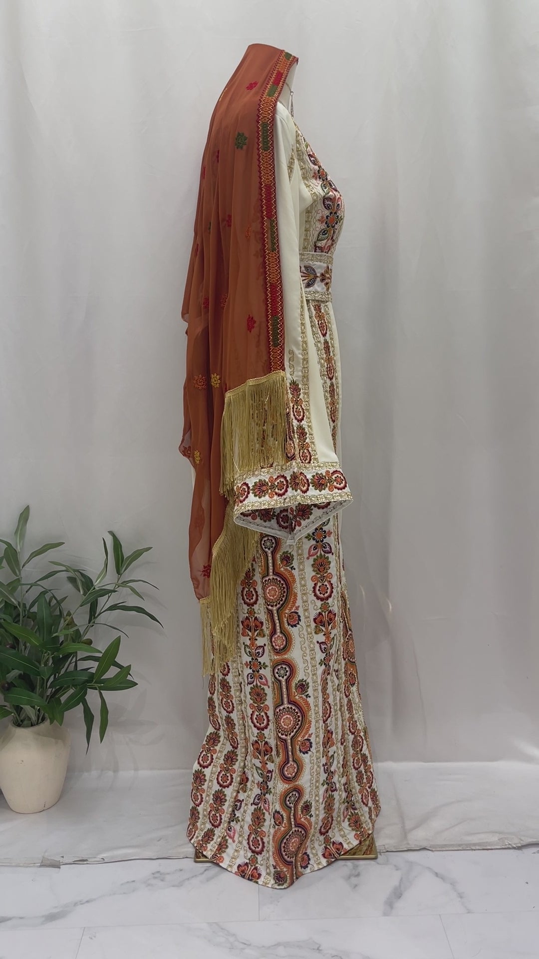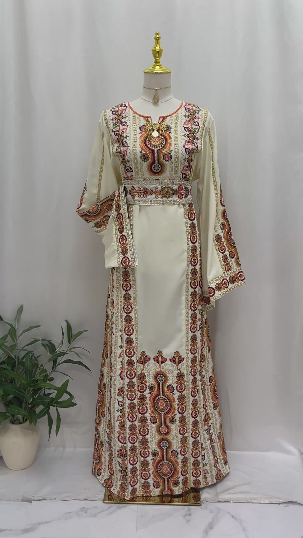 Palestinian Elegance Salma Ivory Embroidered Thoub Modest Dress