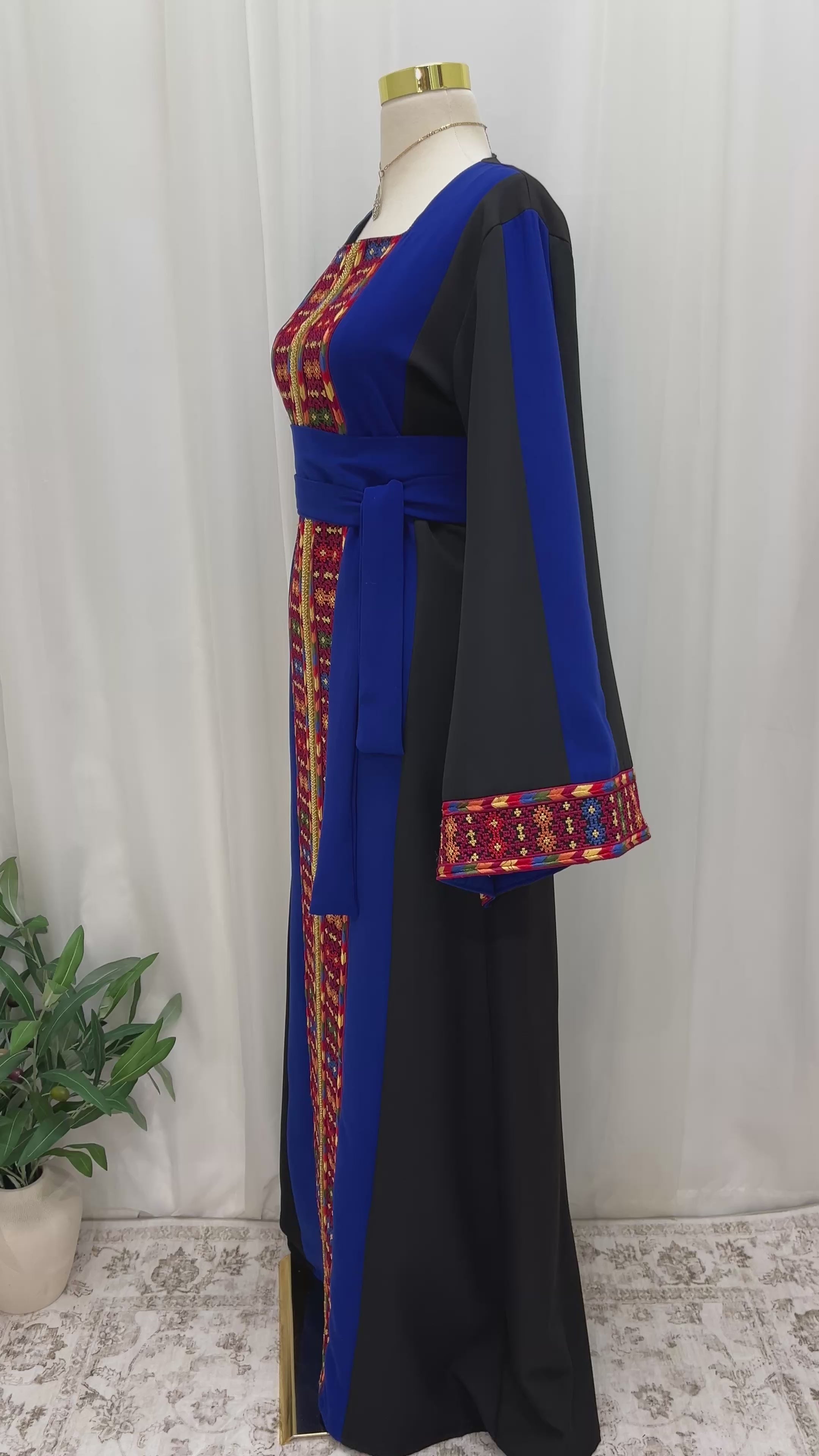 The intricate embroidery on this thobe showcases the skill and dedication typically found in specialized embroidery shops. Whether you are familiar with embroidery shops near me or seeking a unique cultural addition to your wardrobe, this thobe is a perfect choice. The bright colors and patterns reflect heritage in a modern context, making it versatile for any occasion.