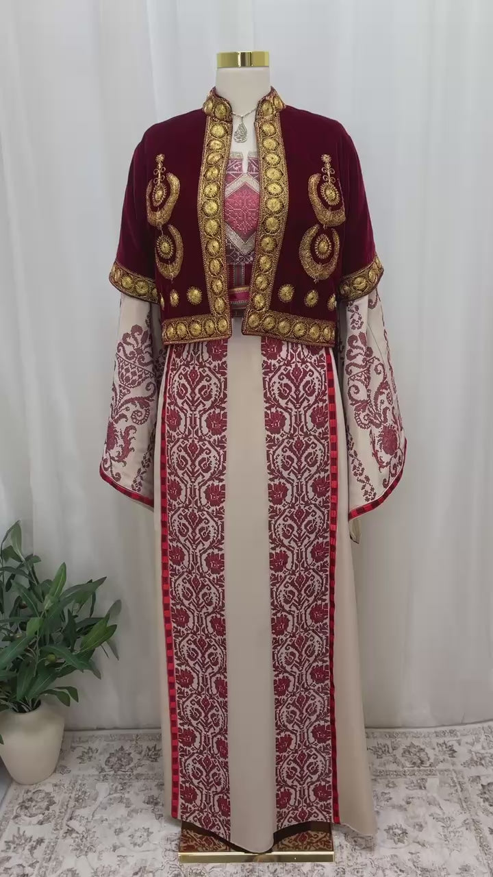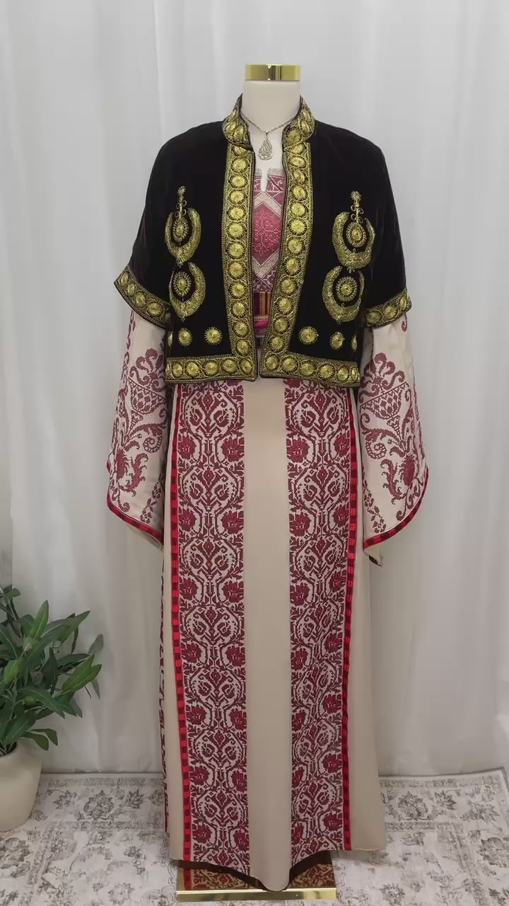 The craftsmanship of this Velvet Taqsireh Jacket is exceptional, truly reflecting a blend of tradition and modern style. Each embroidered detail uses fine gold thread to create intricate patterns that symbolize cultural heritage. The velvet fabric provides a soft, plush texture that enhances the jacket’s luxurious feel.