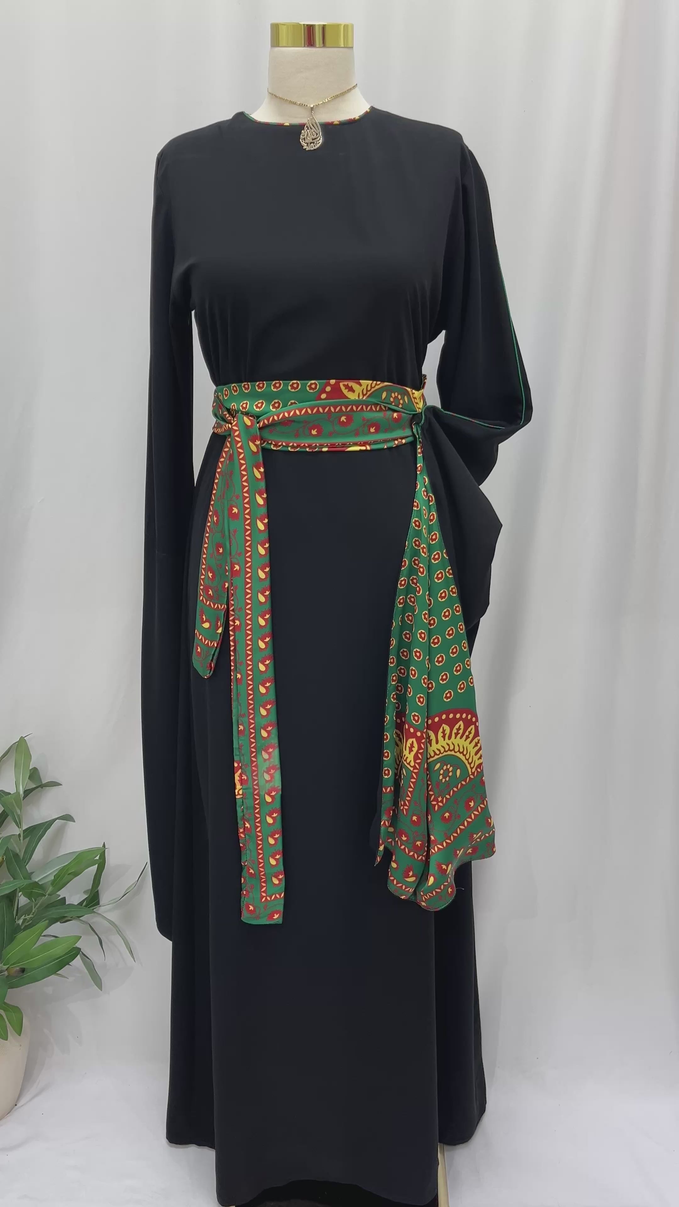 Crafted for versatility and grace, this piece can be styled for both everyday elegance and special gatherings. The sash defines the waist beautifully and brings warmth and character to the minimalist black base.