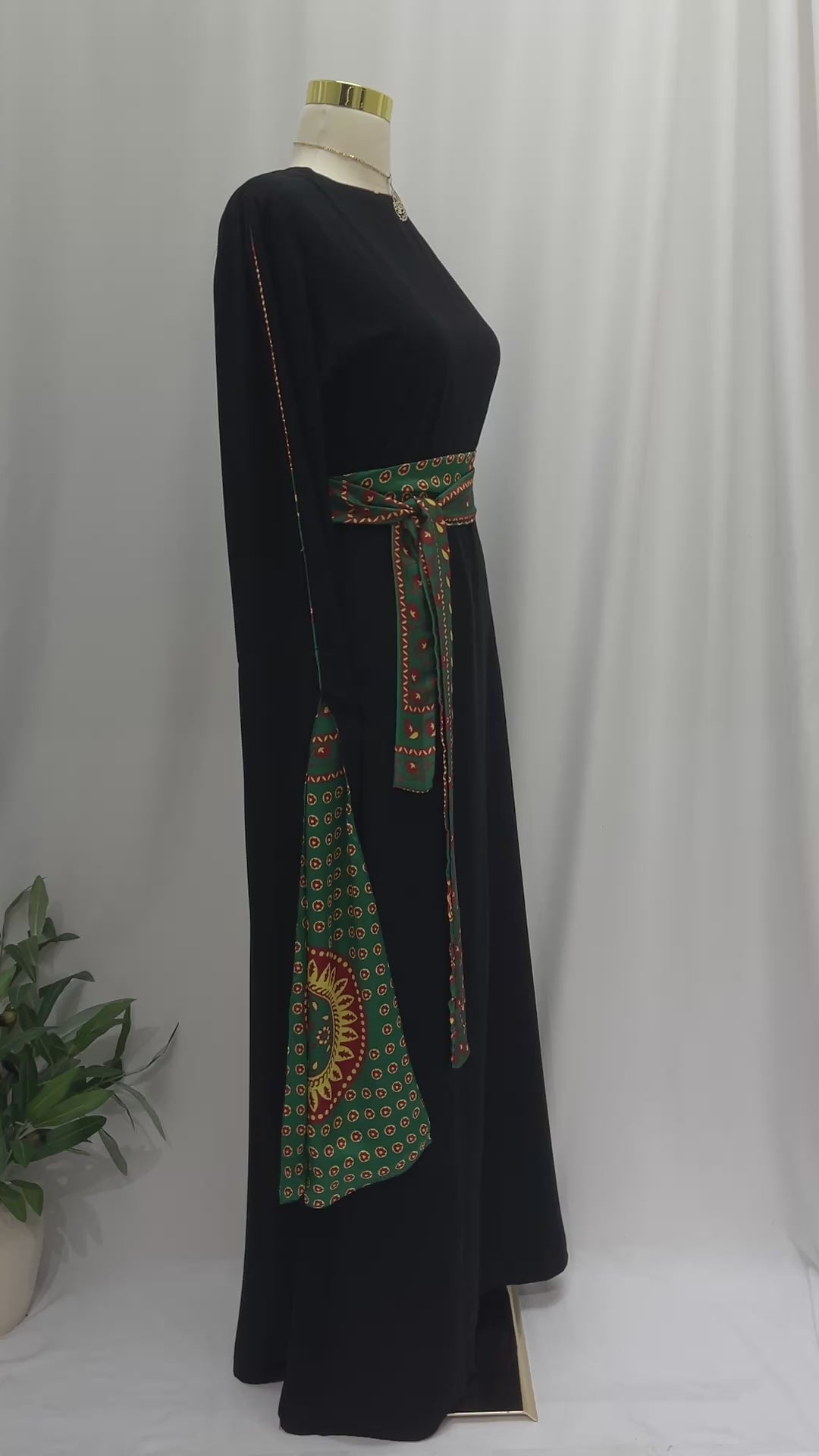 The Sitti Asbah Dress is a timeless black silhouette inspired by traditional Palestinian attire, elevated with a distinctive printed Sitti Asbah sash. The flowing design offers elegance and comfort, while the statement belt adds a cultural touch rooted in heritage.