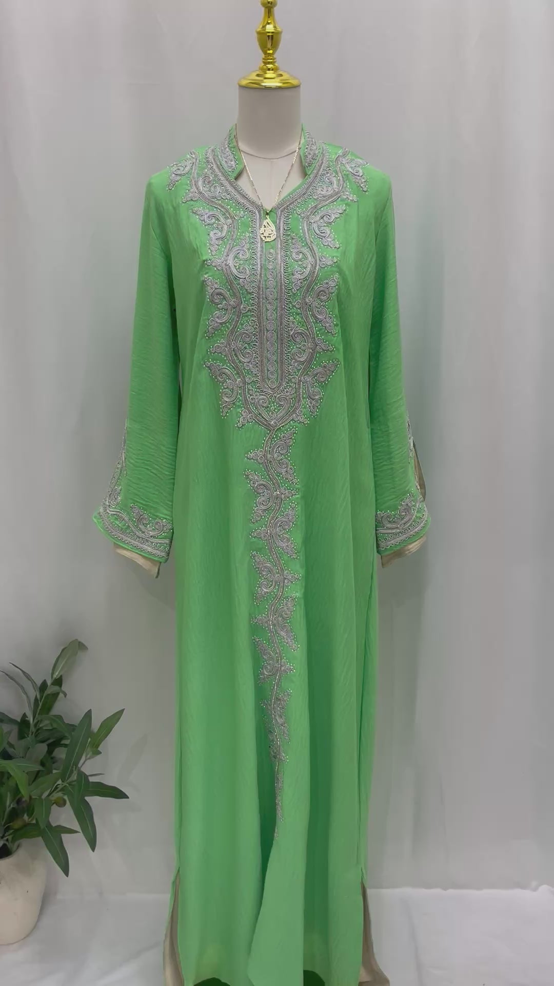 Palestinian Elegance brings this abaya to customers who value quality. The Moroccan Rana Jalabia lets you stand out in every room. Each piece comes with careful stitching and attention to detail. You know you are wearing something special.