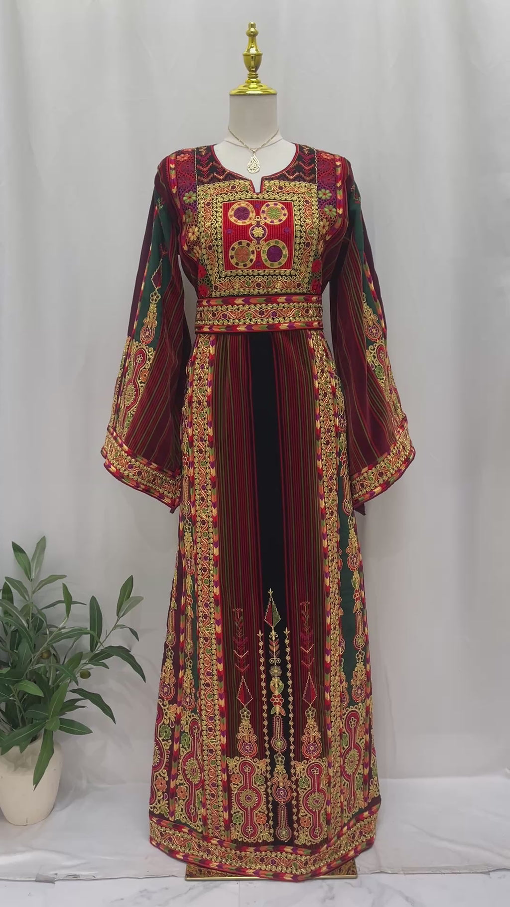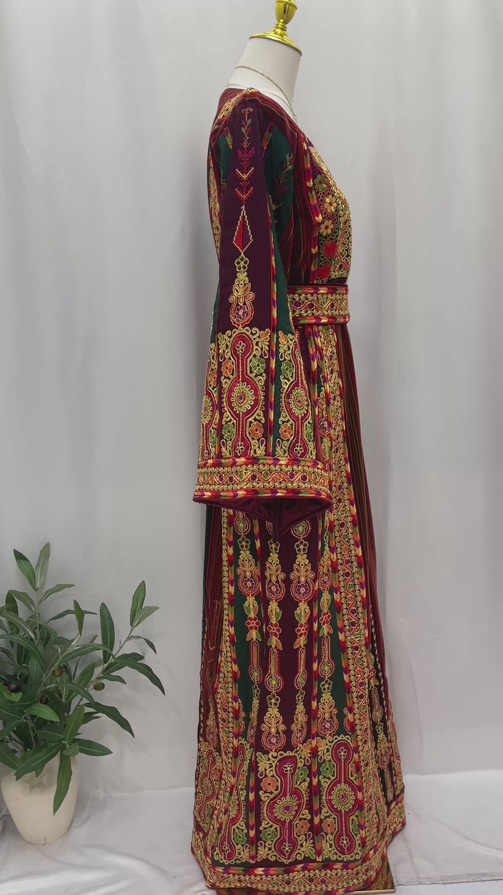 Explore modest fashion with us, welcoming elegance and tradition in every stitch. Our dedication to quality craftsmanship ensures that every Velvet Malaka Embroidered Thobe you receive is unique and deeply connected to Palestinian culture.