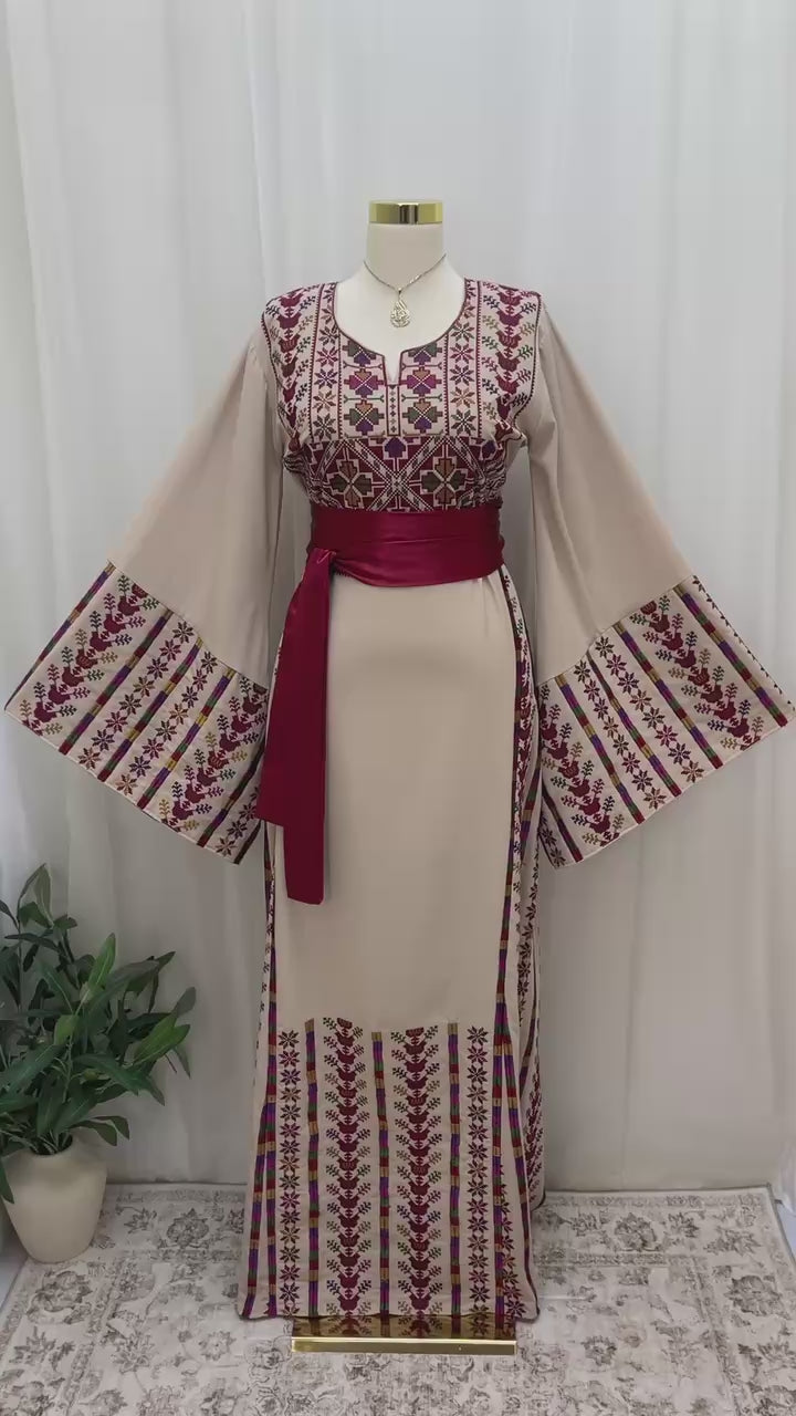 The Turath Thobe is ideal for Ramadan gatherings, weddings, and other elegant cultural festivities. Wearing this thobe evokes a celebration of identity and tradition. It bridges the past with the present, honoring the Palestinian legacy through fashion.