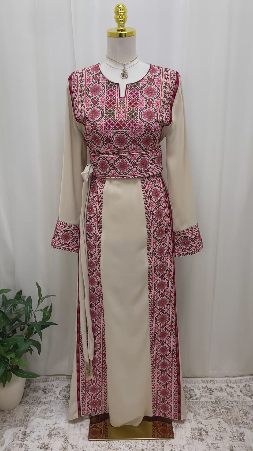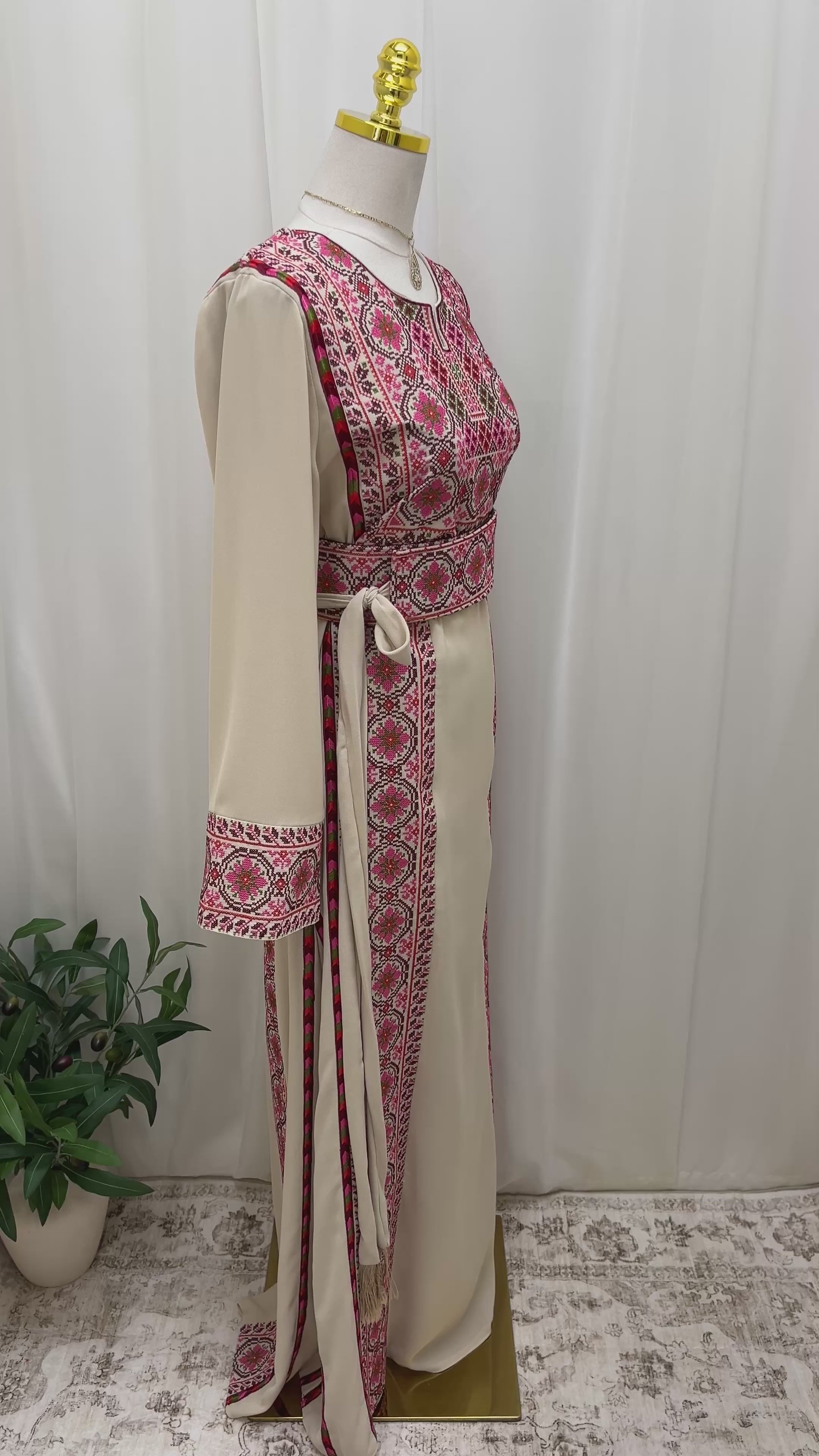 The word "zahra" evokes images of blossoms and beauty. Wearing the Zahra Thobe honors a heritage that celebrates identity and artistry. This garment is a meaningful way to embrace Palestinian elegance and fine craftsmanship.